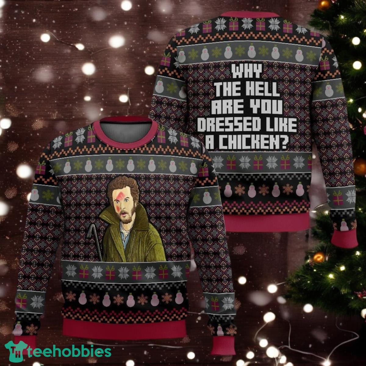 Funny Home Alone Ugly Sweater Why The Hell Did You Take Your Shoes Off Dressed Like a Chicken Sweater