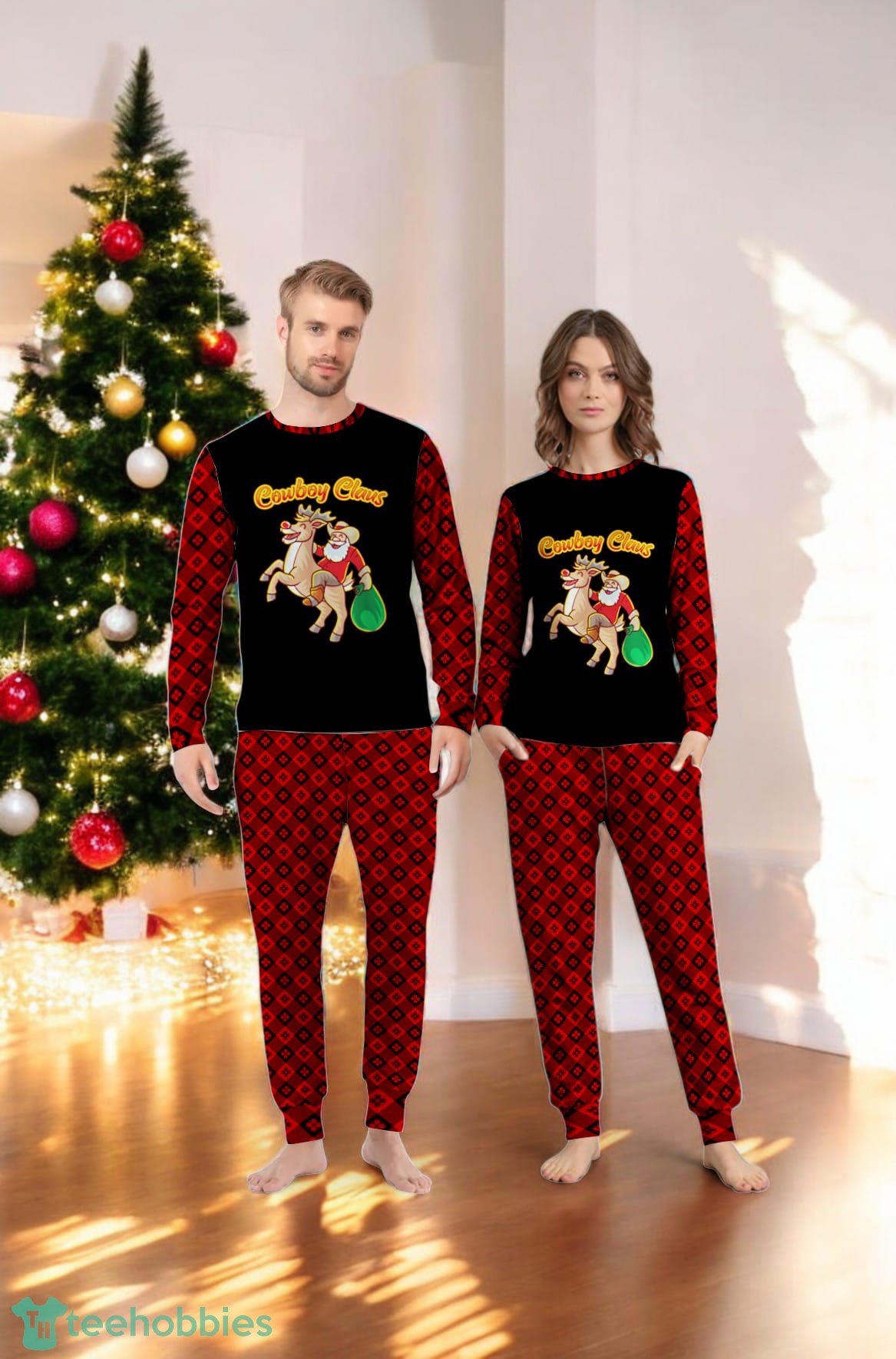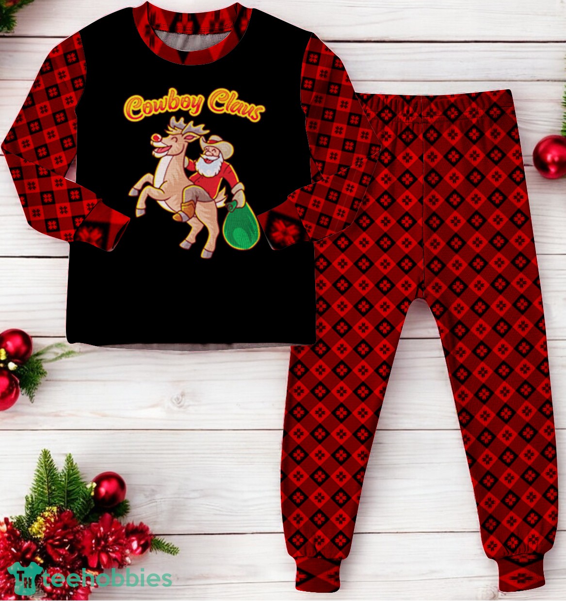 Funny Santa Claus Riding A Reindeer Family Matching Pajama Set
