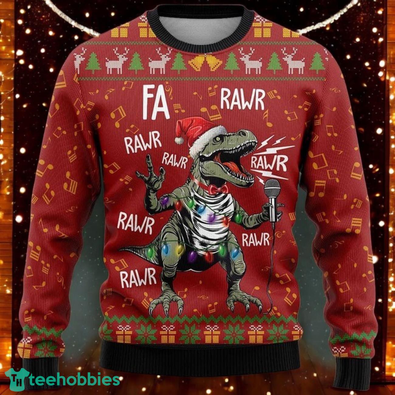 Funny T-Rex Christmas Sweater Fa Rawr Dino Singing Ugly Xmas Sweater