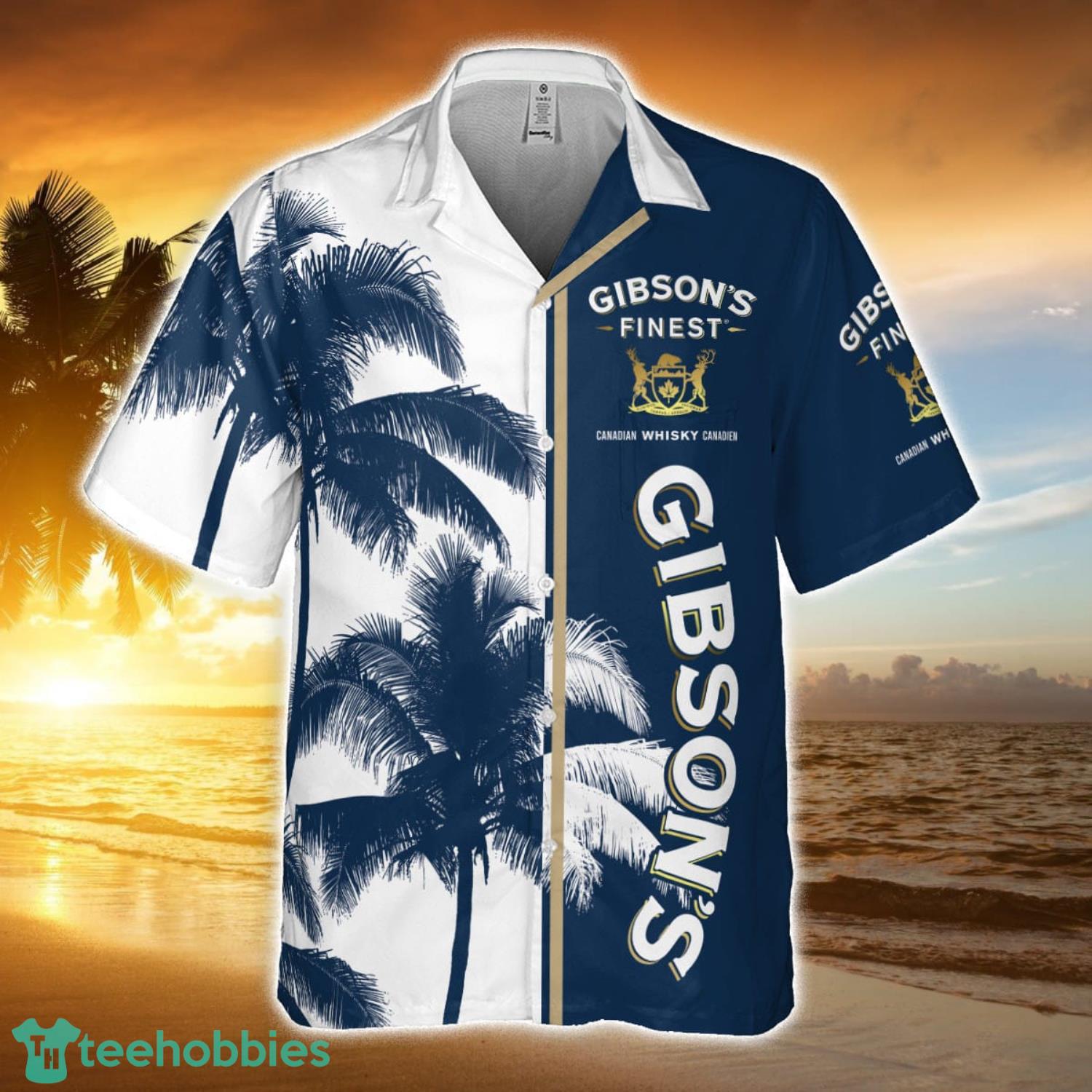 Gibson’s Gin Palm Tree Pattern Short Sleeve Aloha Summer Beach Lover Hawaiian Shirt For Men And Women