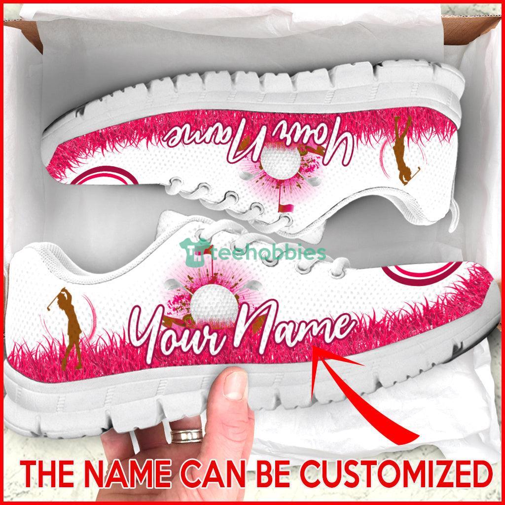 Golf Grass Hot Pink Color Custom Name Fashion Sneaker For Men And Women Comfortable Walking Running Lightweight Casual Shoes Information: