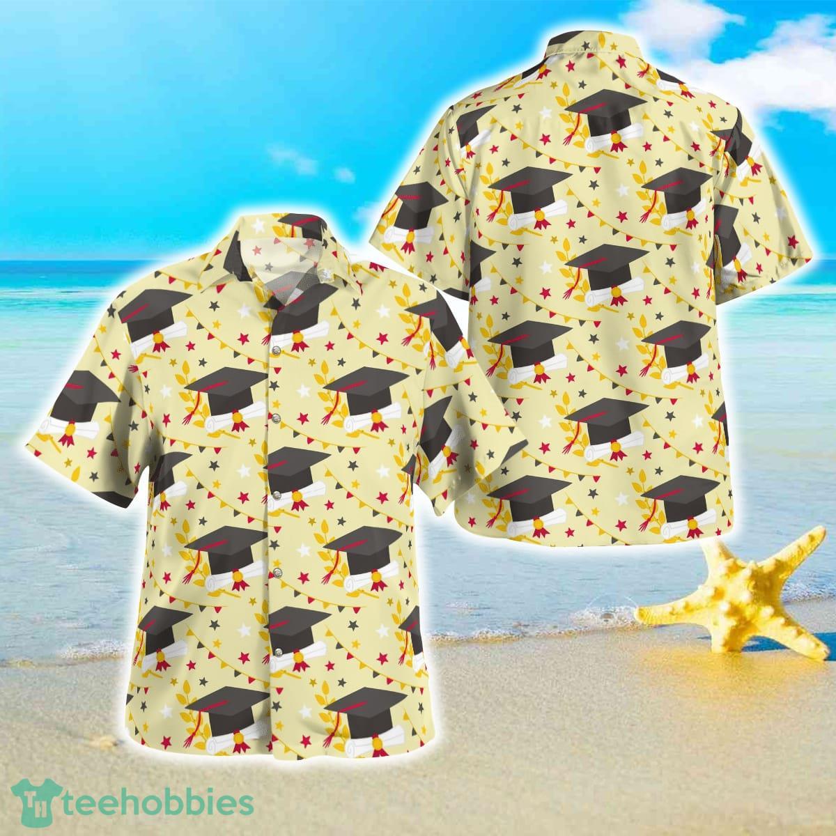 Versatility is key, and this shirt effortlessly transitions from formal to casual settings. Pair it with crisp trousers or a skirt for a polished look during the ceremony, or sport it with shorts for a laid-back vibe at the graduation party. No matter how you style it, this Hawaiian shirt is sure to turn heads and spark conversations.