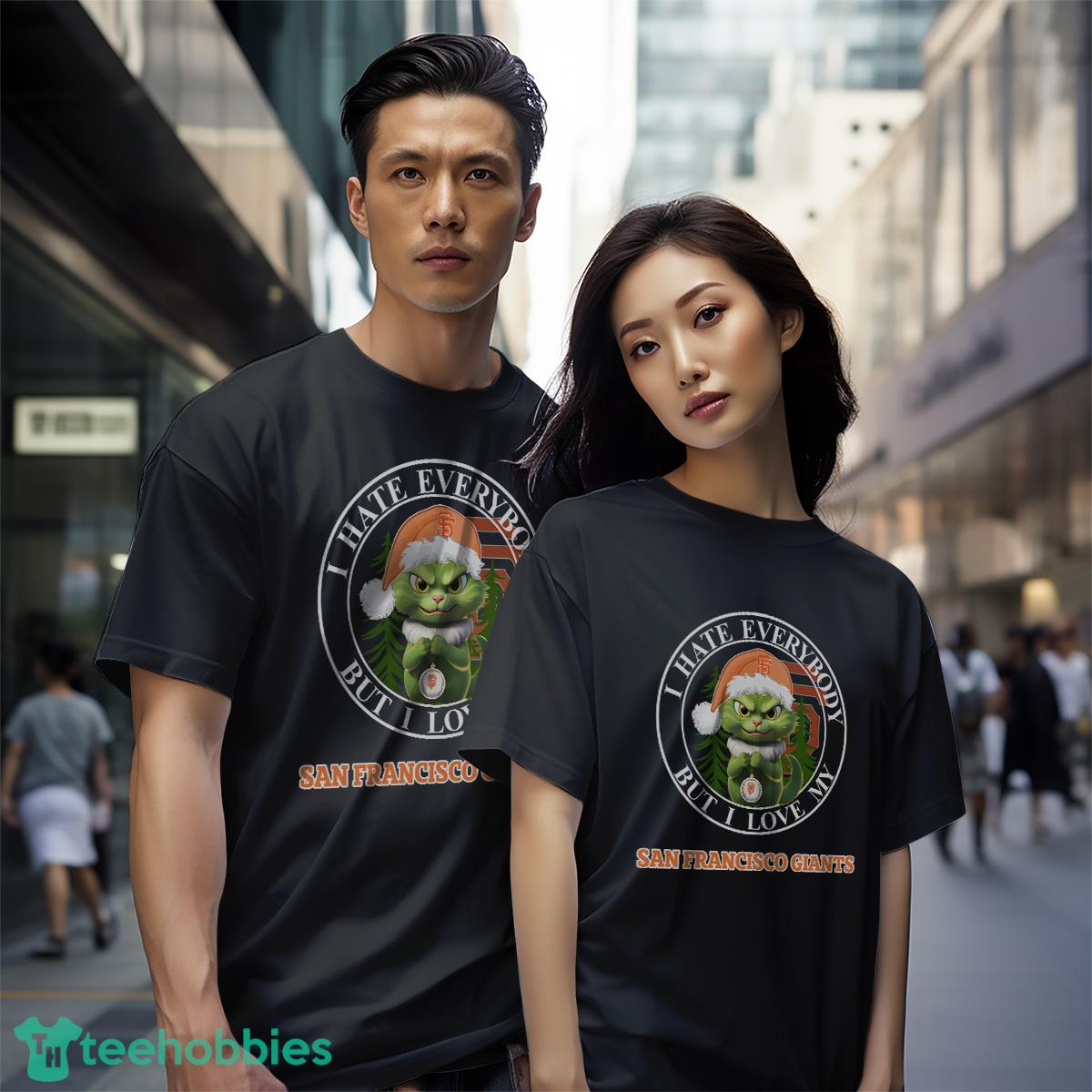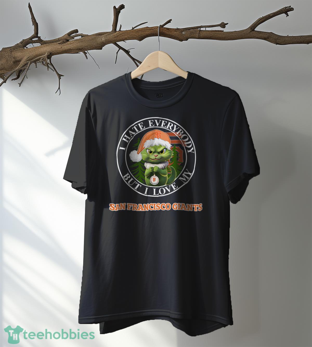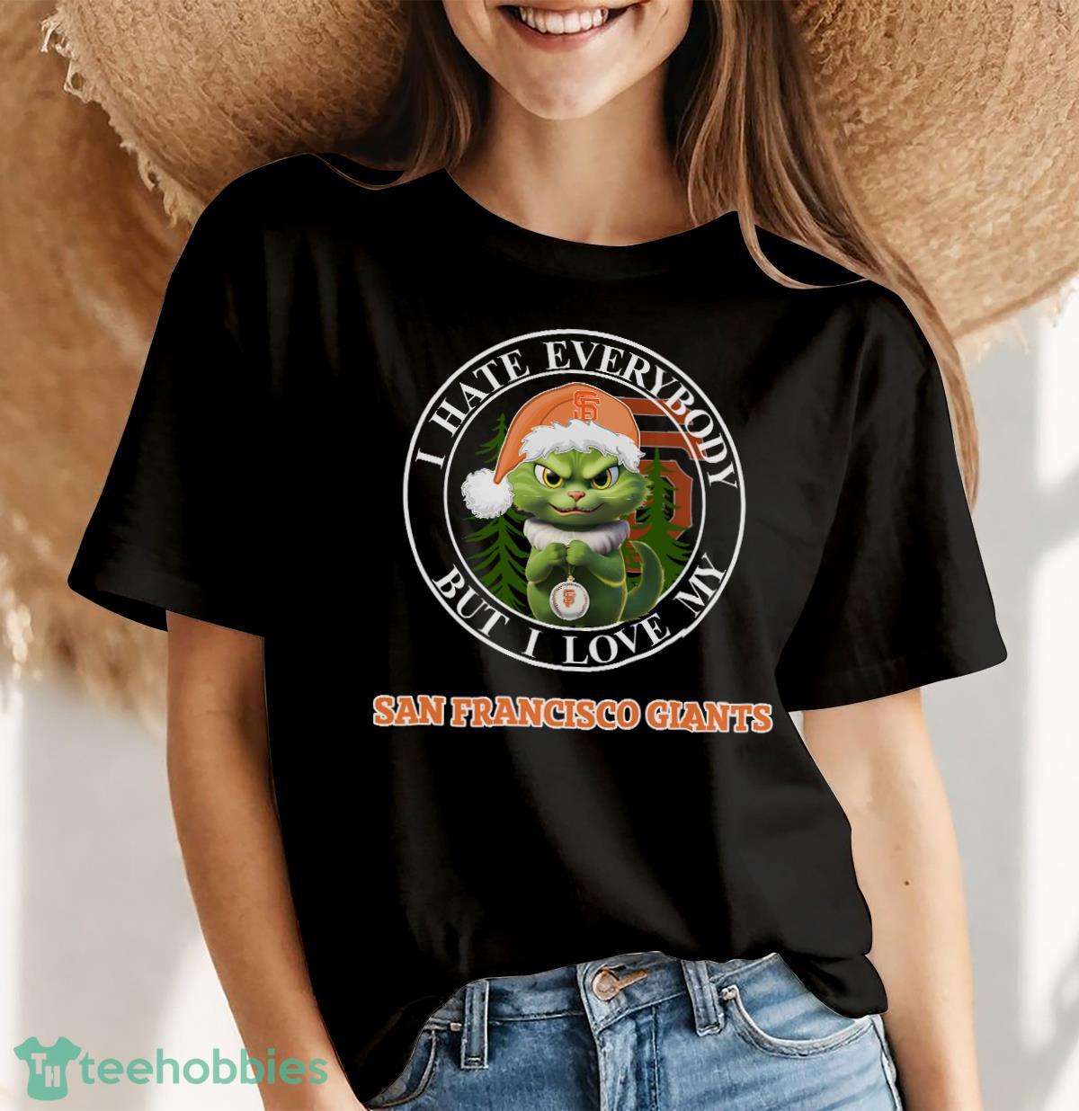 Green Cat With Santa Hat I Hate Everybody But I Love San Francisco Giants Christmas T-shirt Details