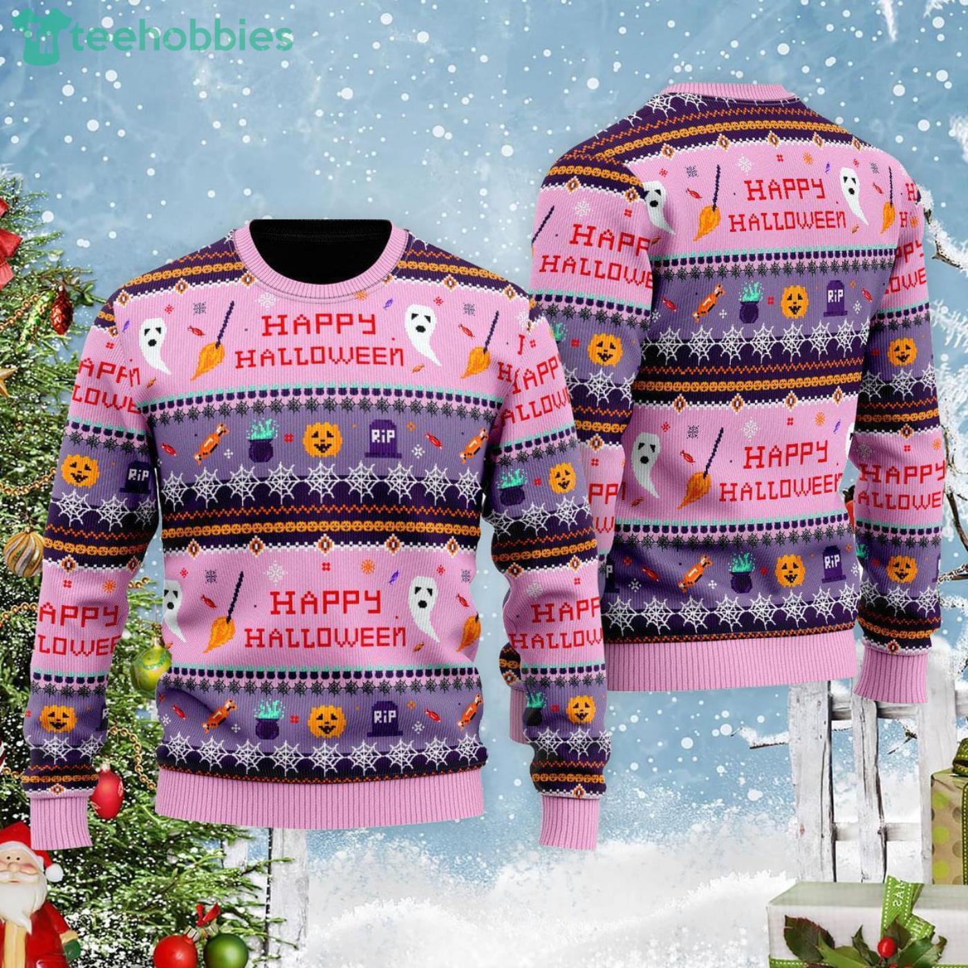 Happy Halloween Boo And Pumpkin Funny Halloween Ugly Christmas Sweater Informations: