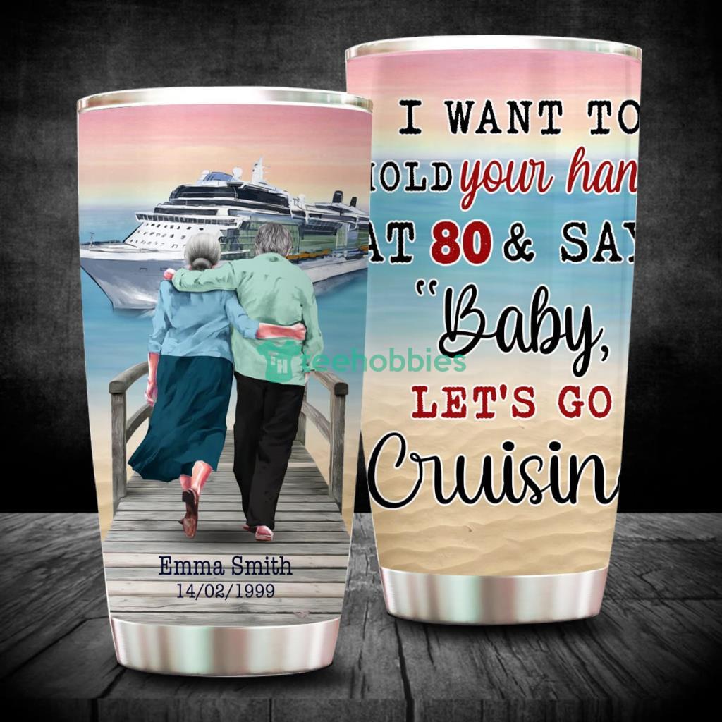 I Want To Hold Your Hand At 80 & Say Baby Let’s Go Cruising, Personalized Couple Tumbler Cup, Gift For Old Couple