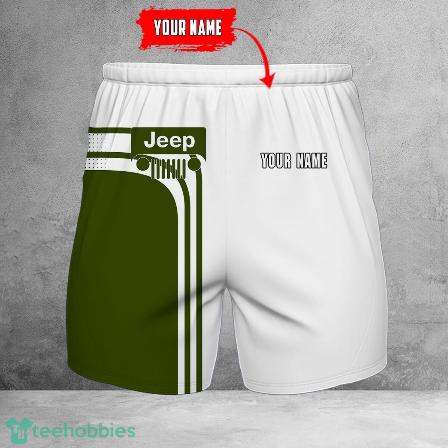 Jeep 3D Beach Shorts For Men Logo Car And Custom Name For Fans Information