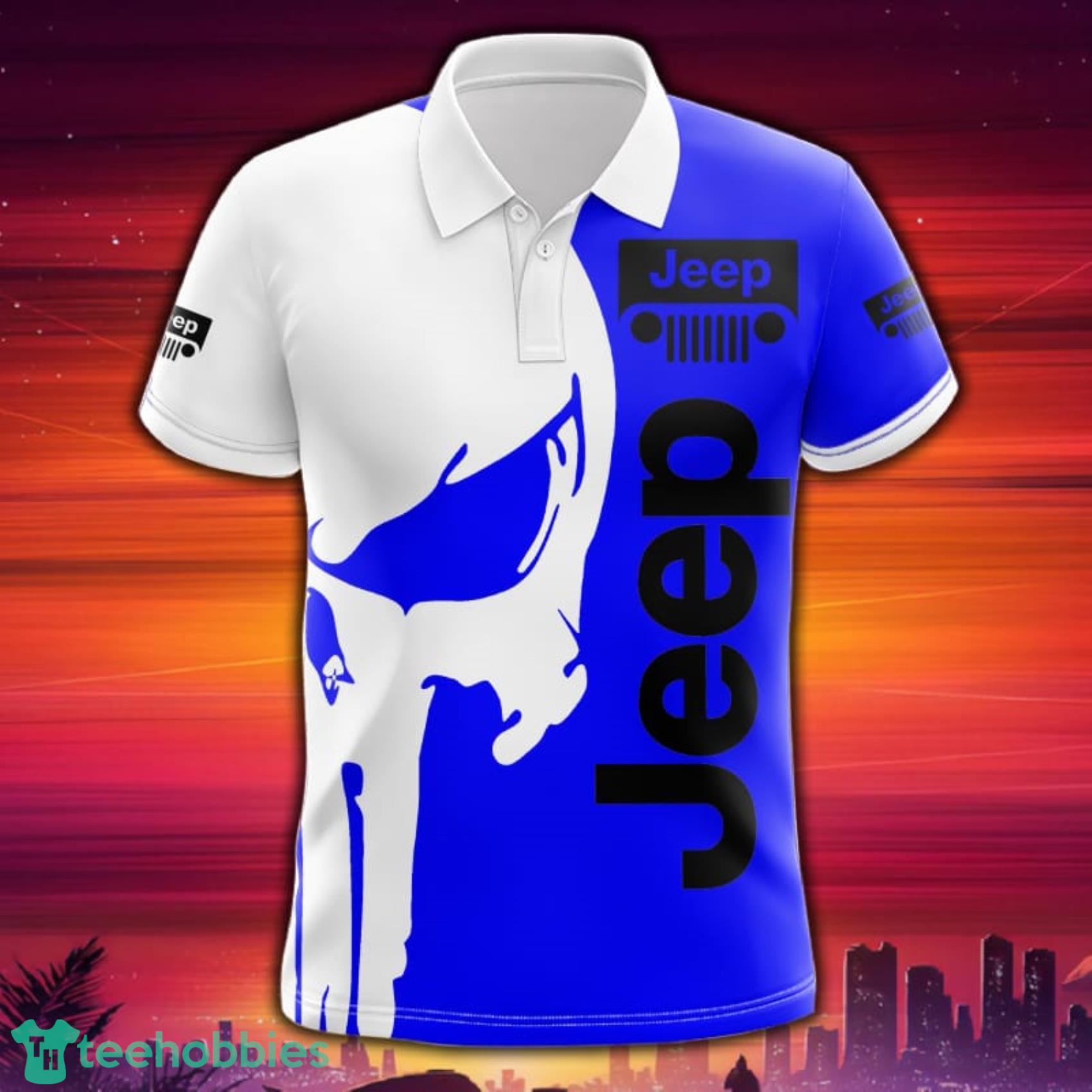 Some of the Jeep And Skull All Over Print Polo Shirt Gift For Fans White Blue photos