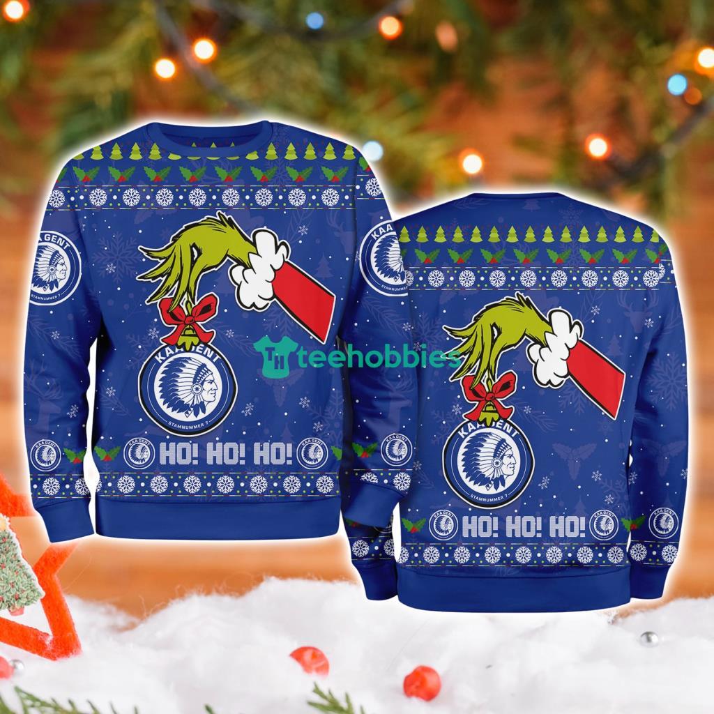 Show your team spirit and festive cheer with the one-of-a-kind Kaa Gent Grinch Hand Ugly Christmas Sweater 3D! This unique Christmas sweater seamlessly blends your love for the Kaa Gent football club with the mischievous charm of the Grinch. It’s the perfect way to stand out at any holiday sweater party, combining comfort, style, and a whole lot of fun. Get ready to spread some smiles and maybe a little bit of playful Grinchiness this season.