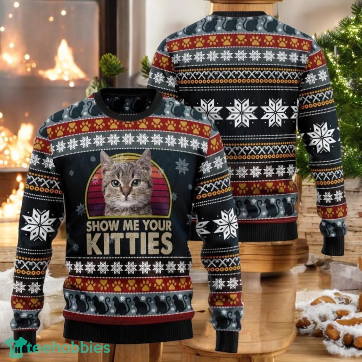 Kitty Cat Ugly Christmas Sweater Cat Christmas Sweater Cat Xmas Sweater
