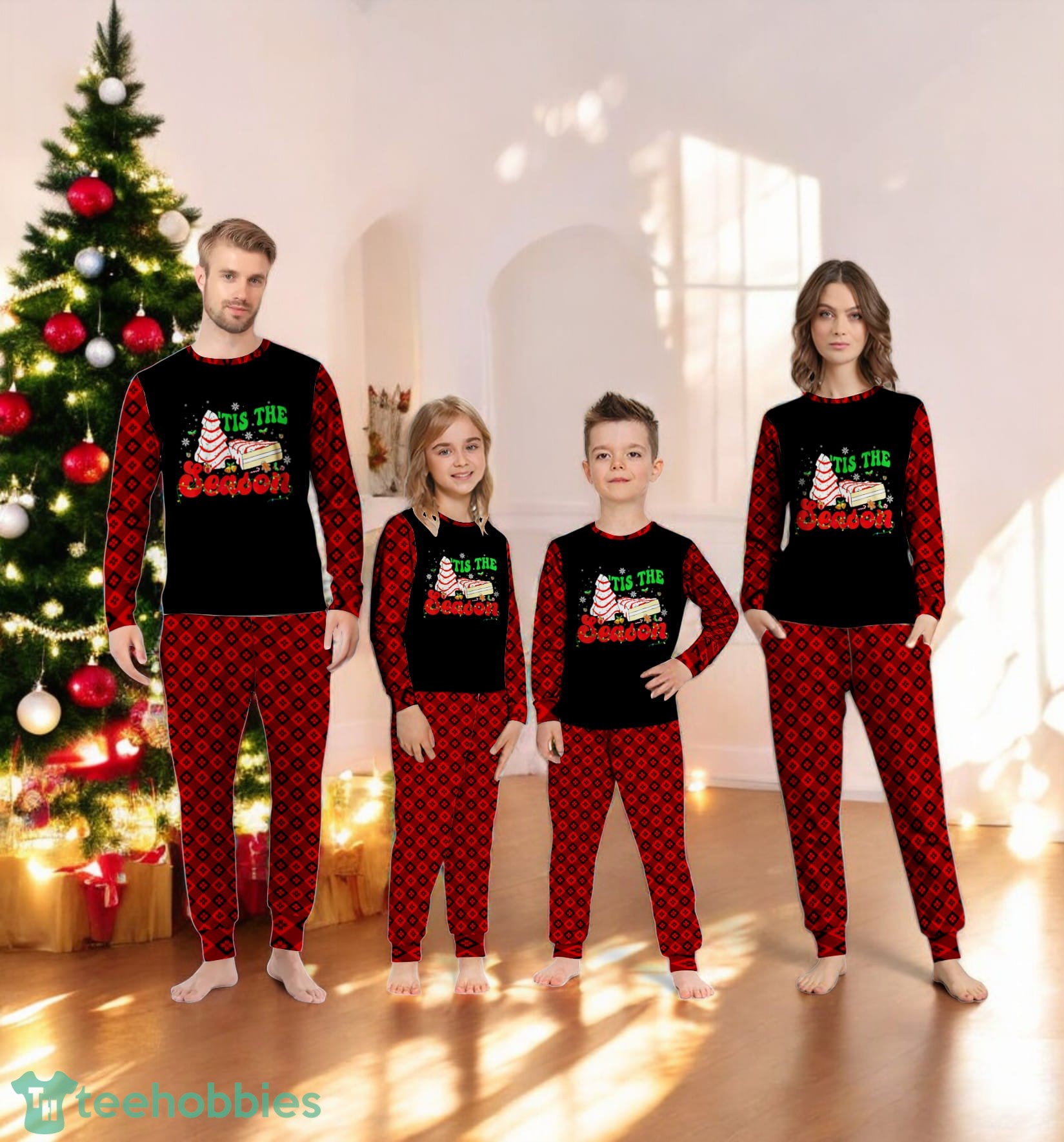 Don’t miss out on creating these special family Christmas memories. Order your Little Tis The Season Christmas Tree Cakes Debbie Family Matching Pajama Set today and make this Christmas unforgettable!