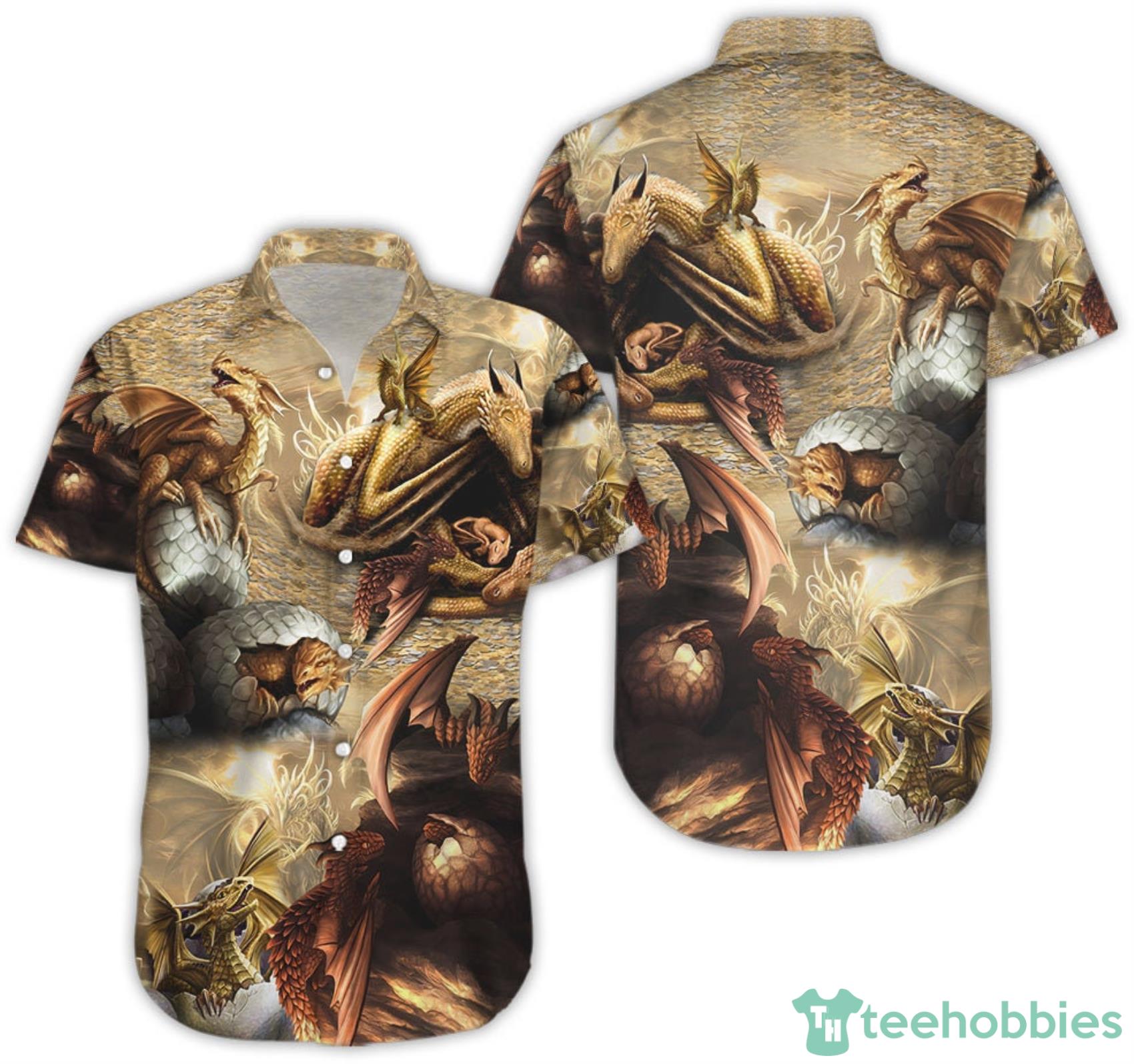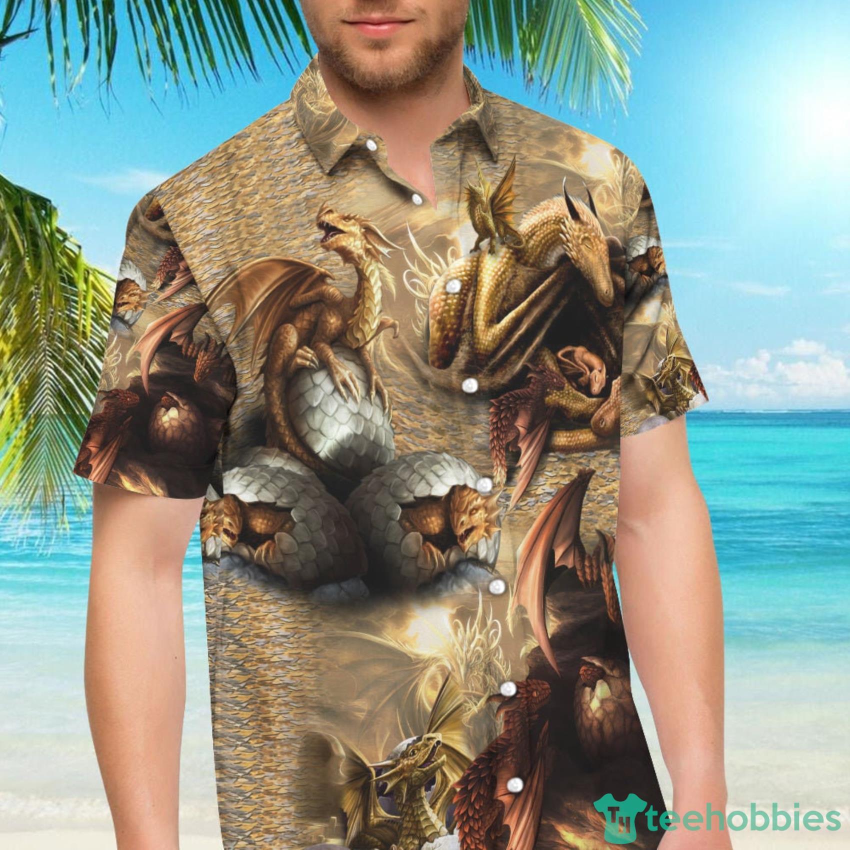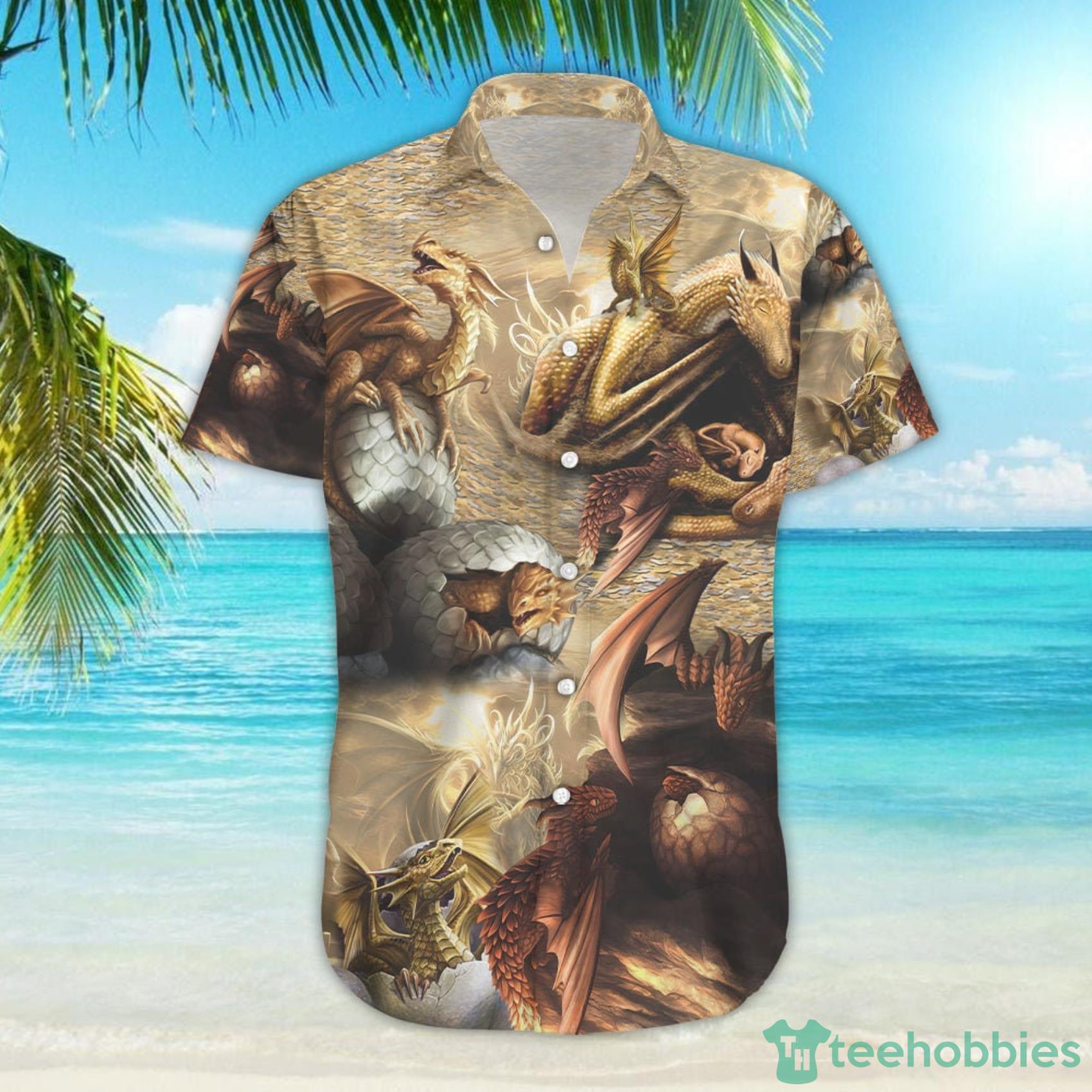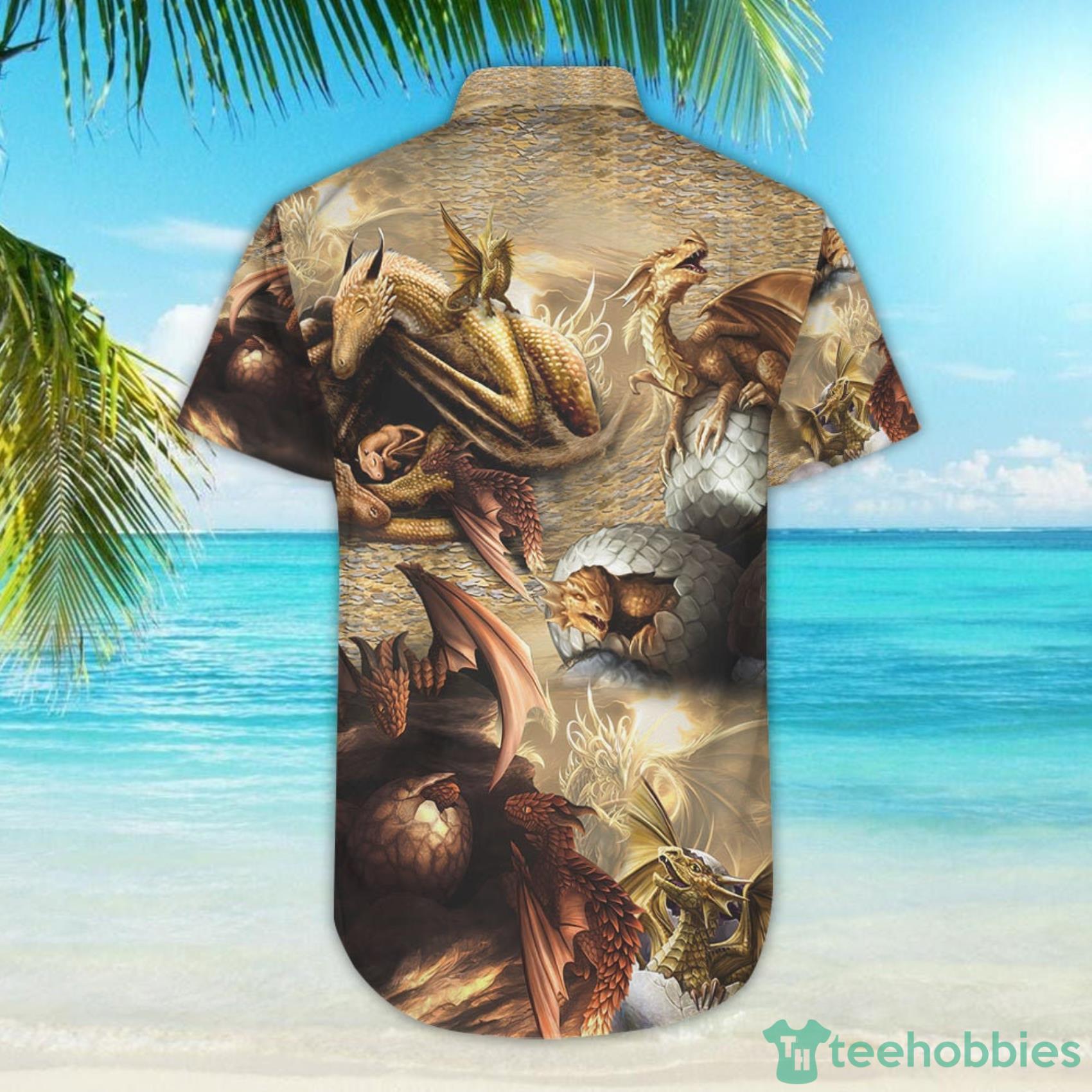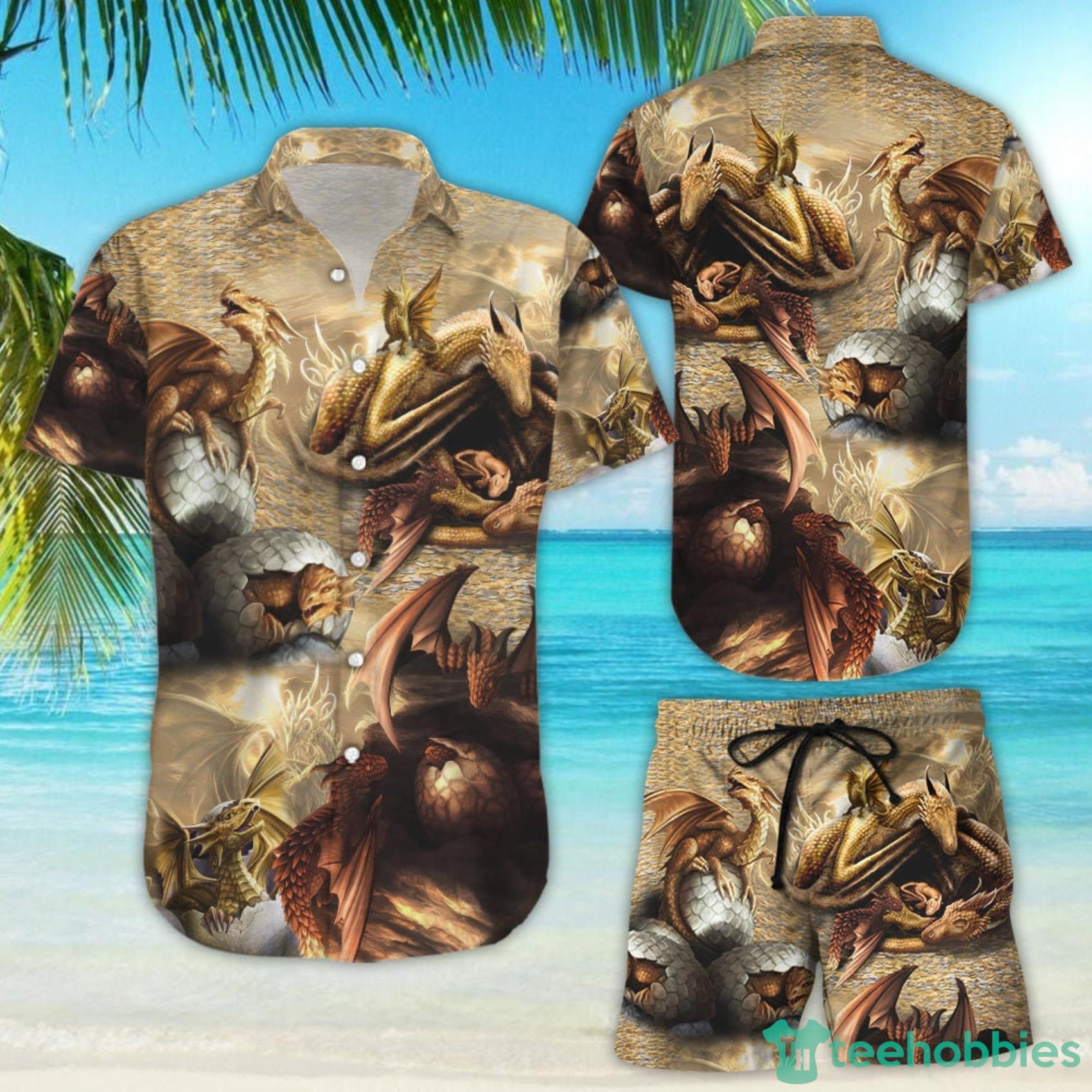This design is available in a combo Hawaiian shirt & shorts. You can also get it separate. The default option is only one shirt or one pair of shorts. You have chosen a combo to get them both. This combo Look Into Dragon Eggs Great Things Happen Inside Hawaiian Shirt And Beach Short is perfect to go to the beach. Get yours now or make a great gift.