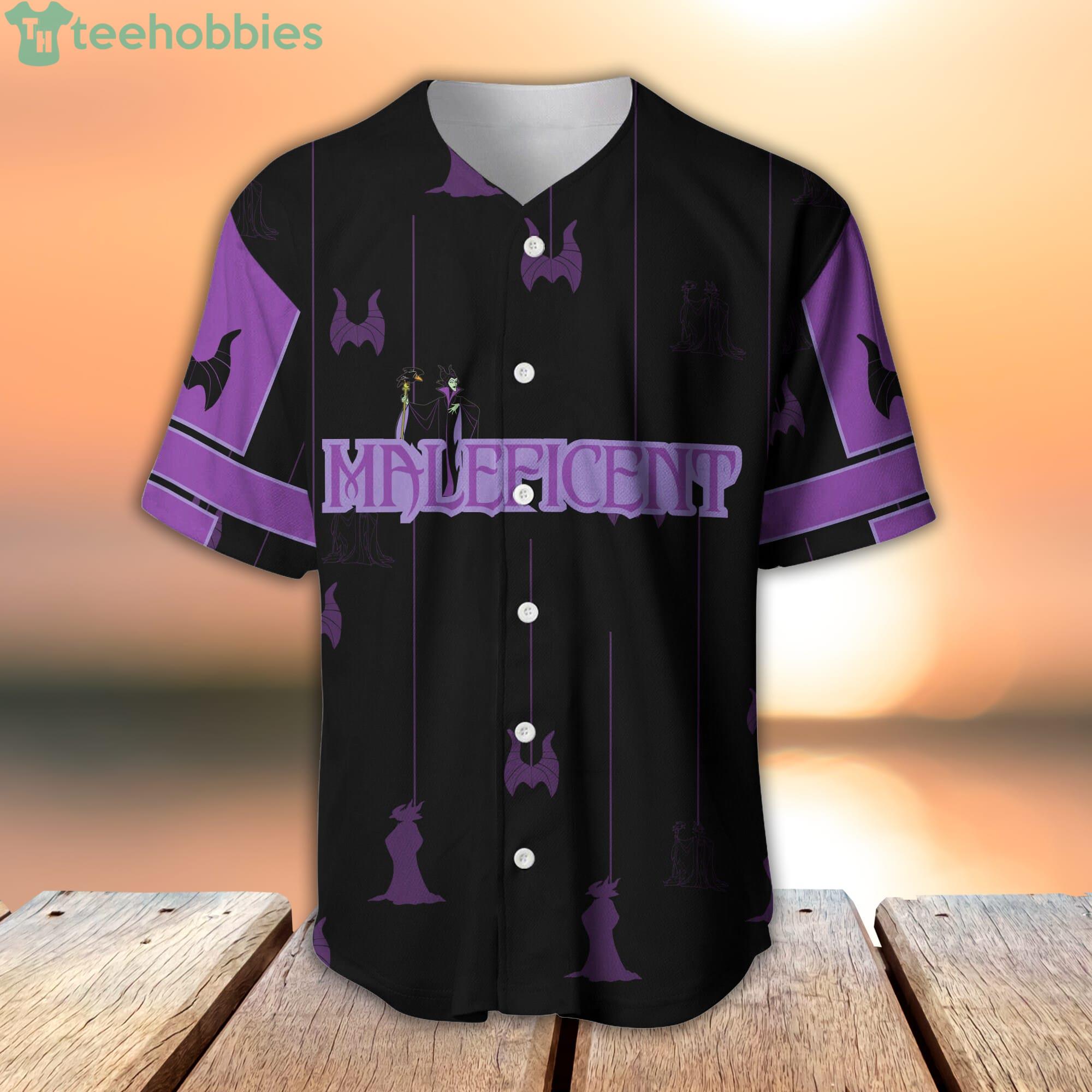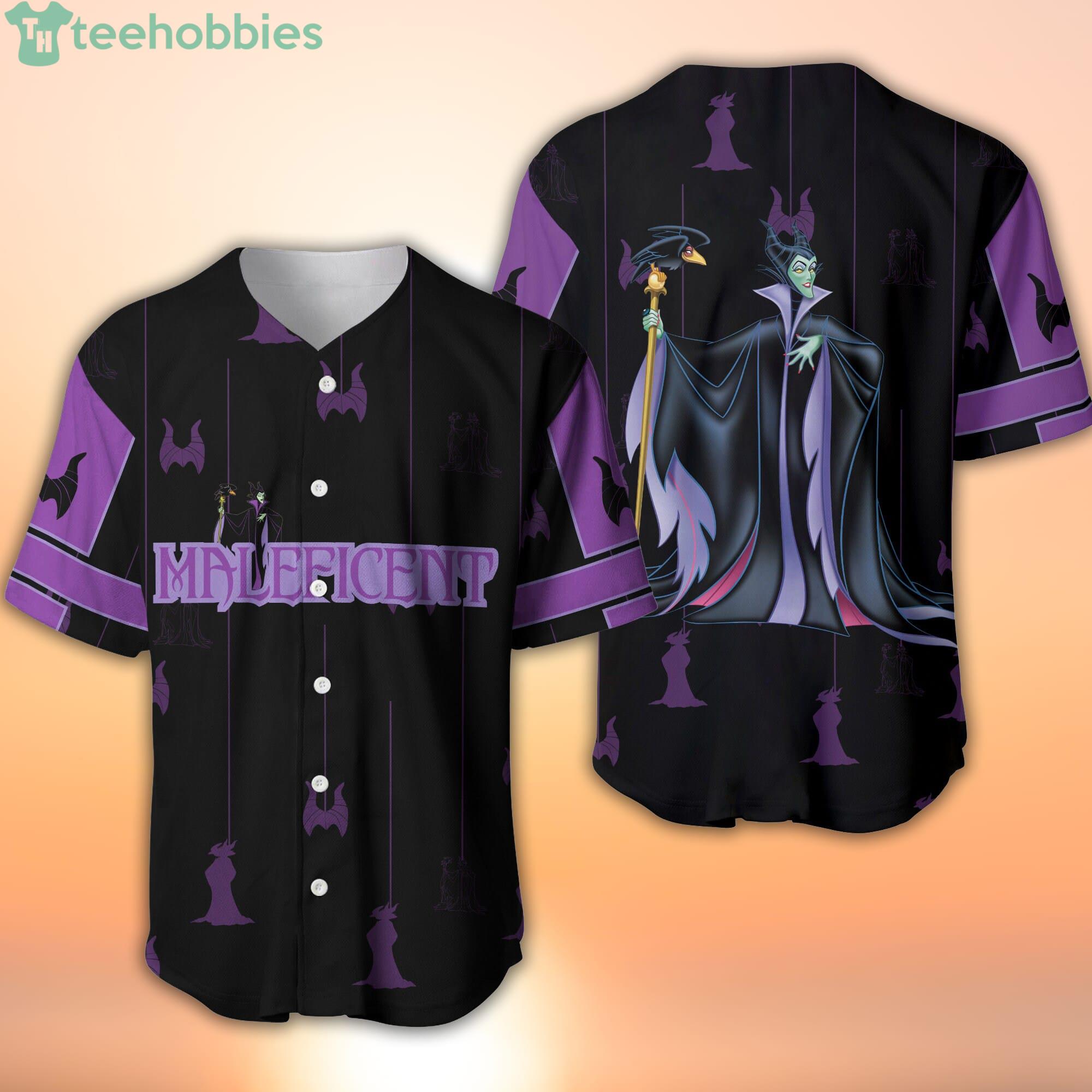Some of the Maleficent Purple Black Stripes Patterns Disney Cartoon Baseball Jersey Shirt photos