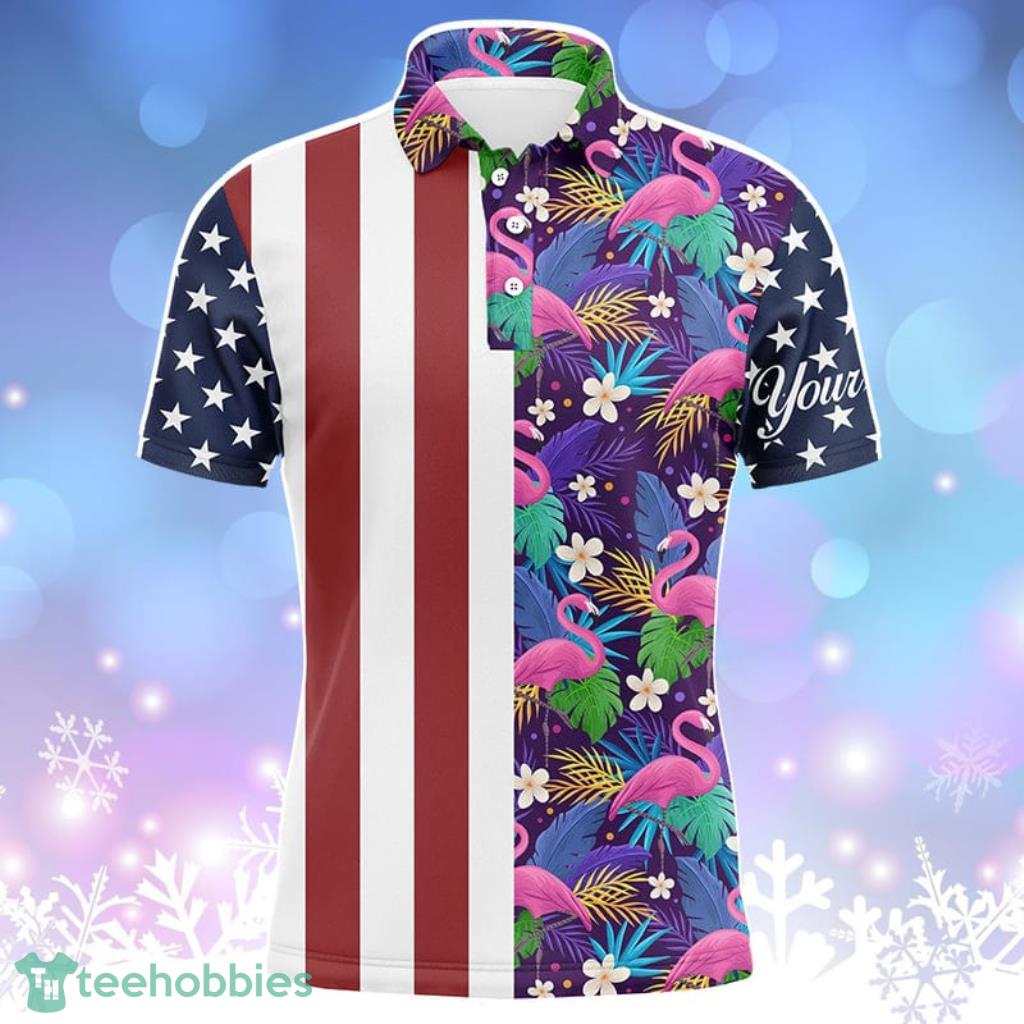 Some of the Mens Golf Polo Shirts American Flag Patriotic Custom Name Floral Flamingo Pattern Golf Shirts For Men photos