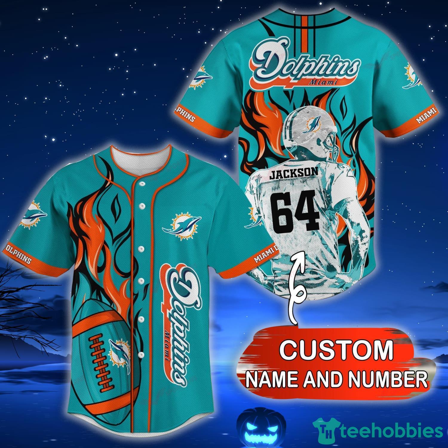 Miami Dolphins NFL Custom Name And Number Baseball Jersey Shirt For Fans