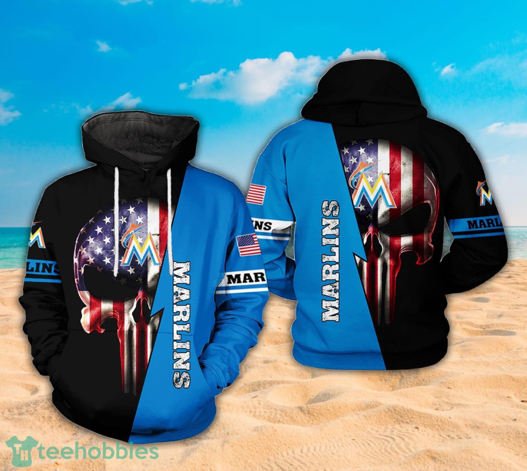 Some of the Miami Marlins MLB Logo American Flag And Skull Full Print 3D Hoodie photos
