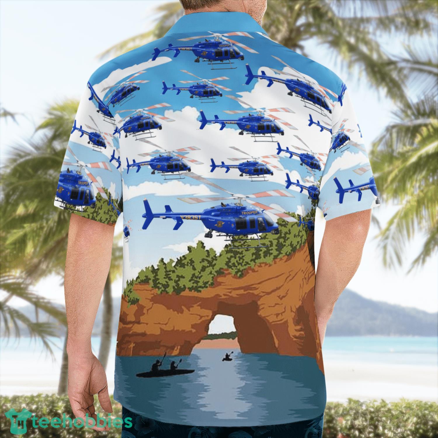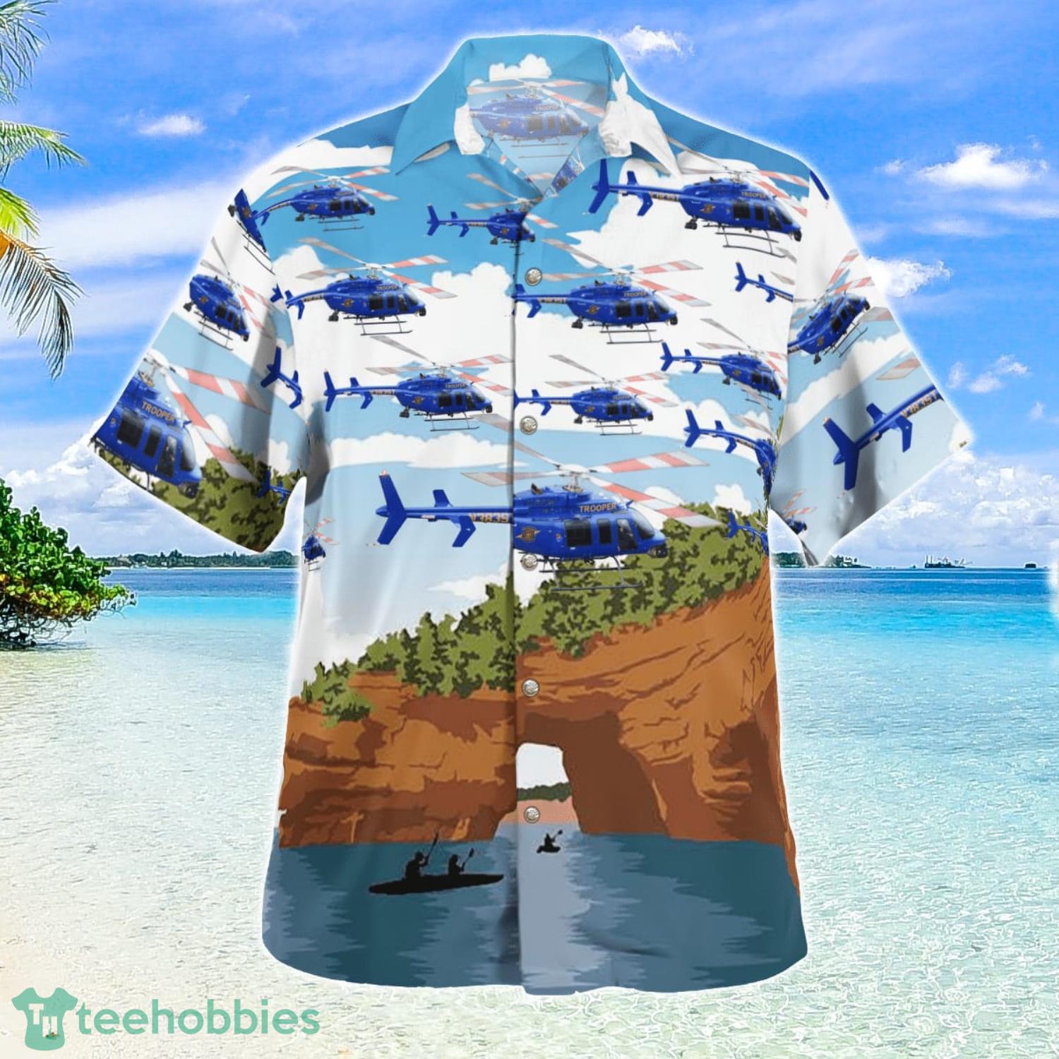 Featuring a stunning design of Michigan Police helicopters flying over a beautiful Hawaiian landscape, this shirt is a must-have for any aviation enthusiast or anyone who loves to show off their unique style. The vibrant colors and intricate details of the design are sure to turn heads and make you stand out from the crowd.