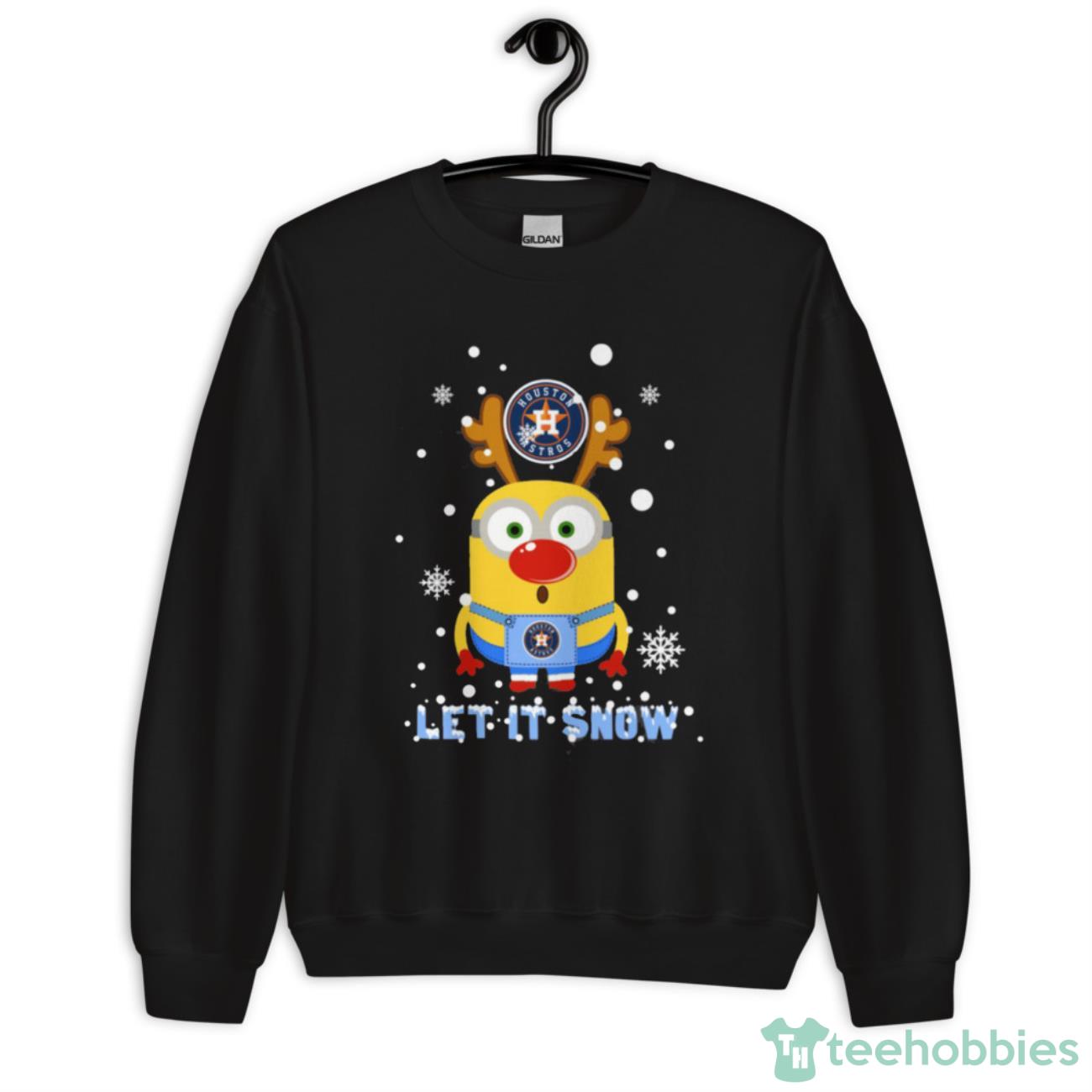 Get ready to show off your love for the Houston Astros and the holiday season with the Minion Houston Astros Ugly Christmas Sweaters Let It Snow T-Shirt. This must-have t-shirt combines the festive spirit of Christmas with the iconic Minion characters and your favorite baseball team.