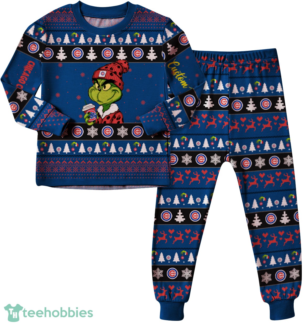 MLB Grinch Chicago Cubs MLB Custom Name Christmas Knitting Pattern Matching Family Pajamas Set