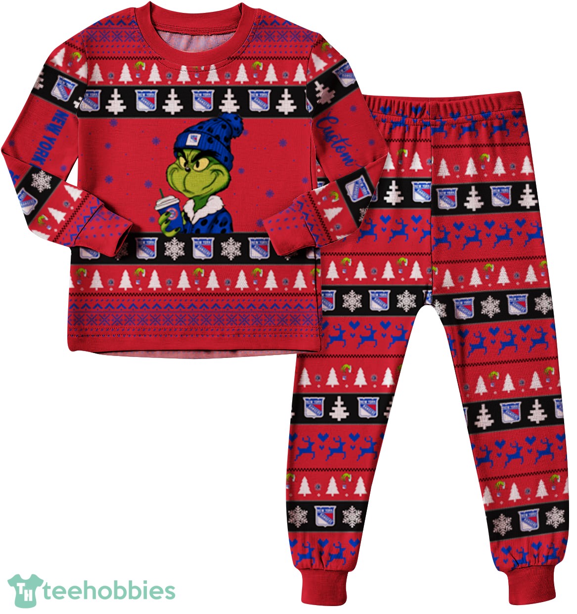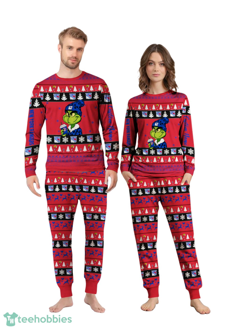 MLB Grinch New York Rangers Custom Name Christmas Knitting Pattern Matching Family Pajamas Set