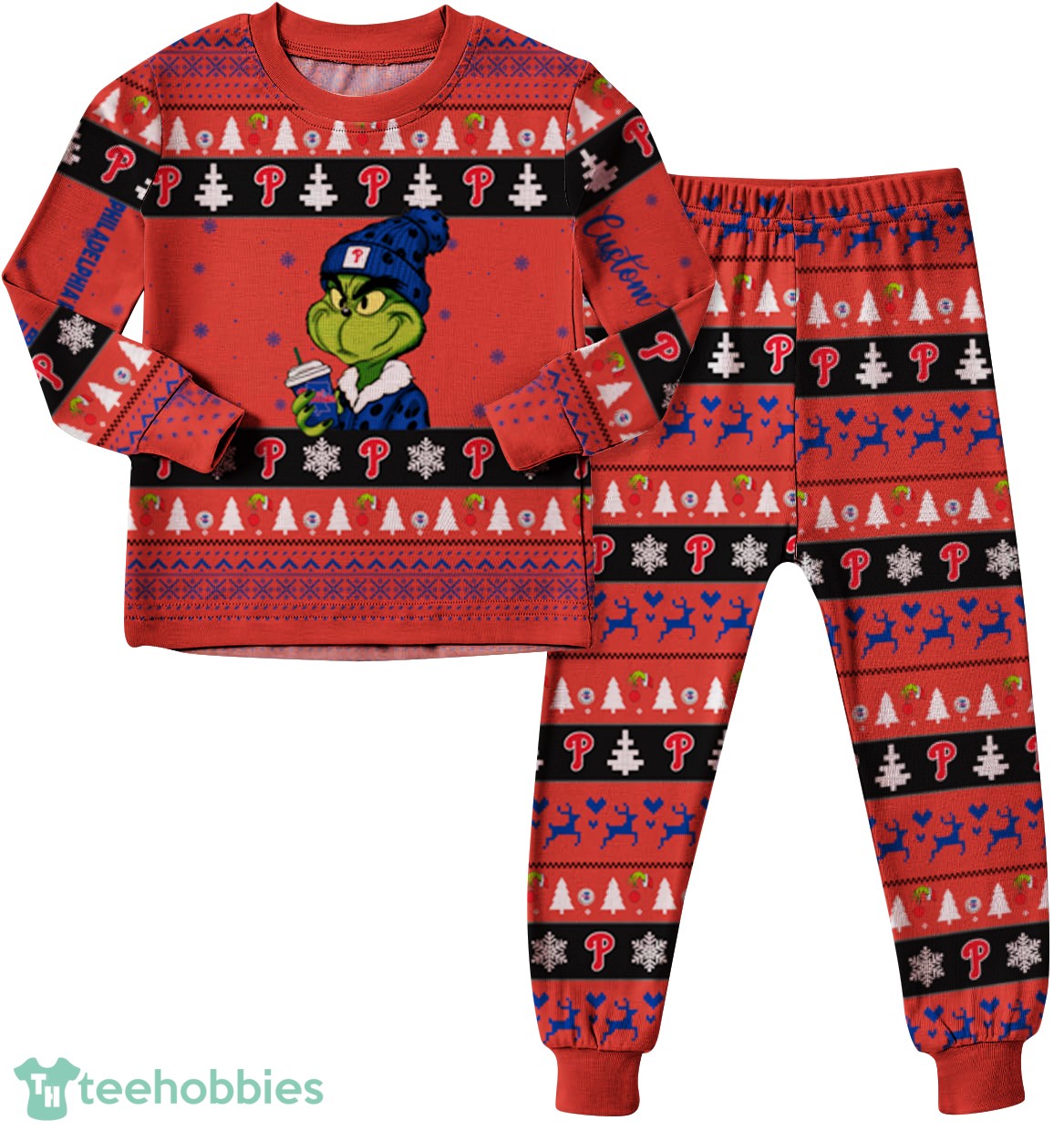 MLB Grinch Philadelphia Phillies MLB Custom Name Christmas Knitting Pattern Matching Family Pajamas Set