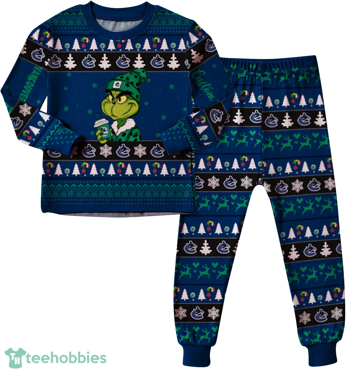 MLB Grinch Vancouver Canucks Custom Name Christmas Knitting Pattern Matching Family Pajamas Set