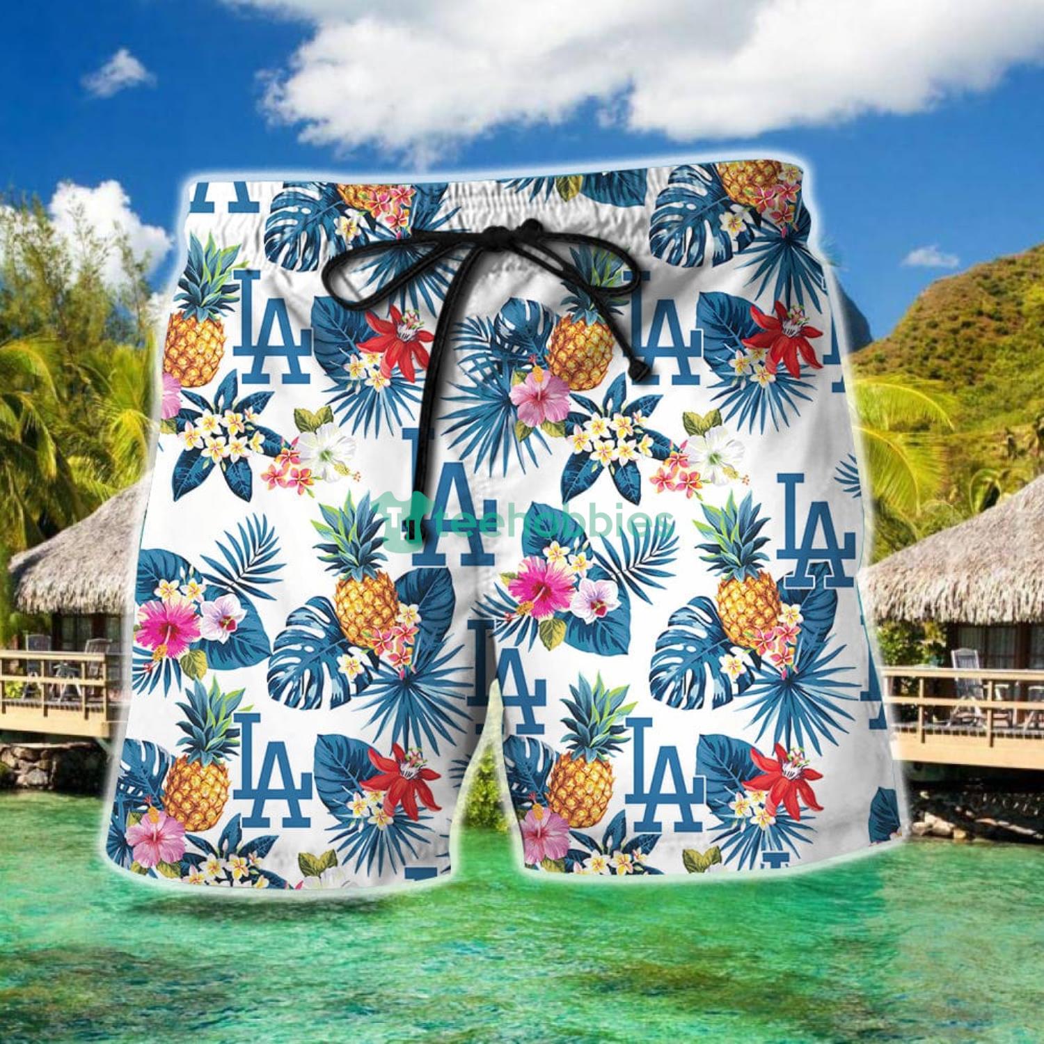 Some of the MLB LA Dodgers Pineapple Hawaiian Shirt And Shorts photos