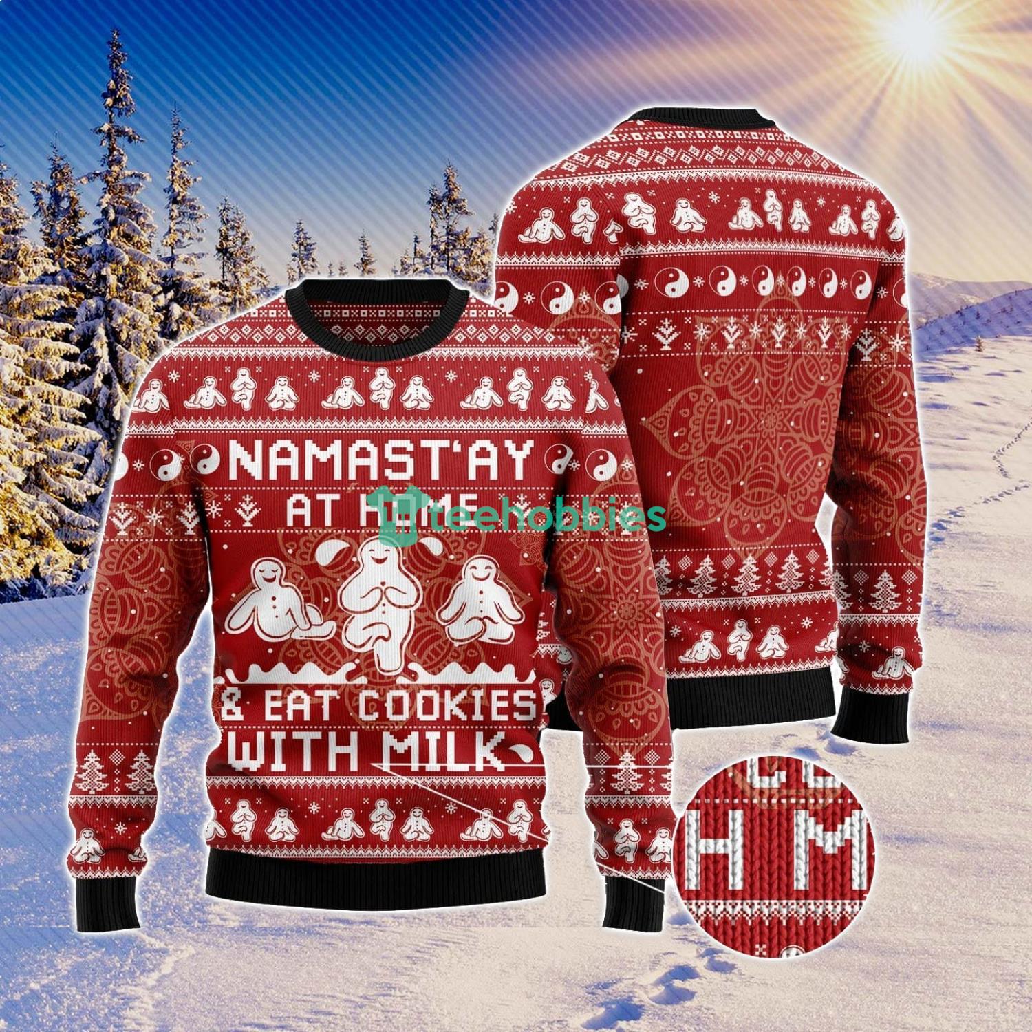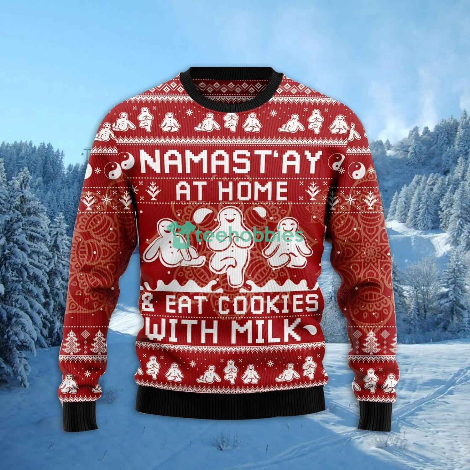 Namast‘ay At Home Eat Cookies With Milk Ugly Christmas Sweater Family Noel Gift Informations: