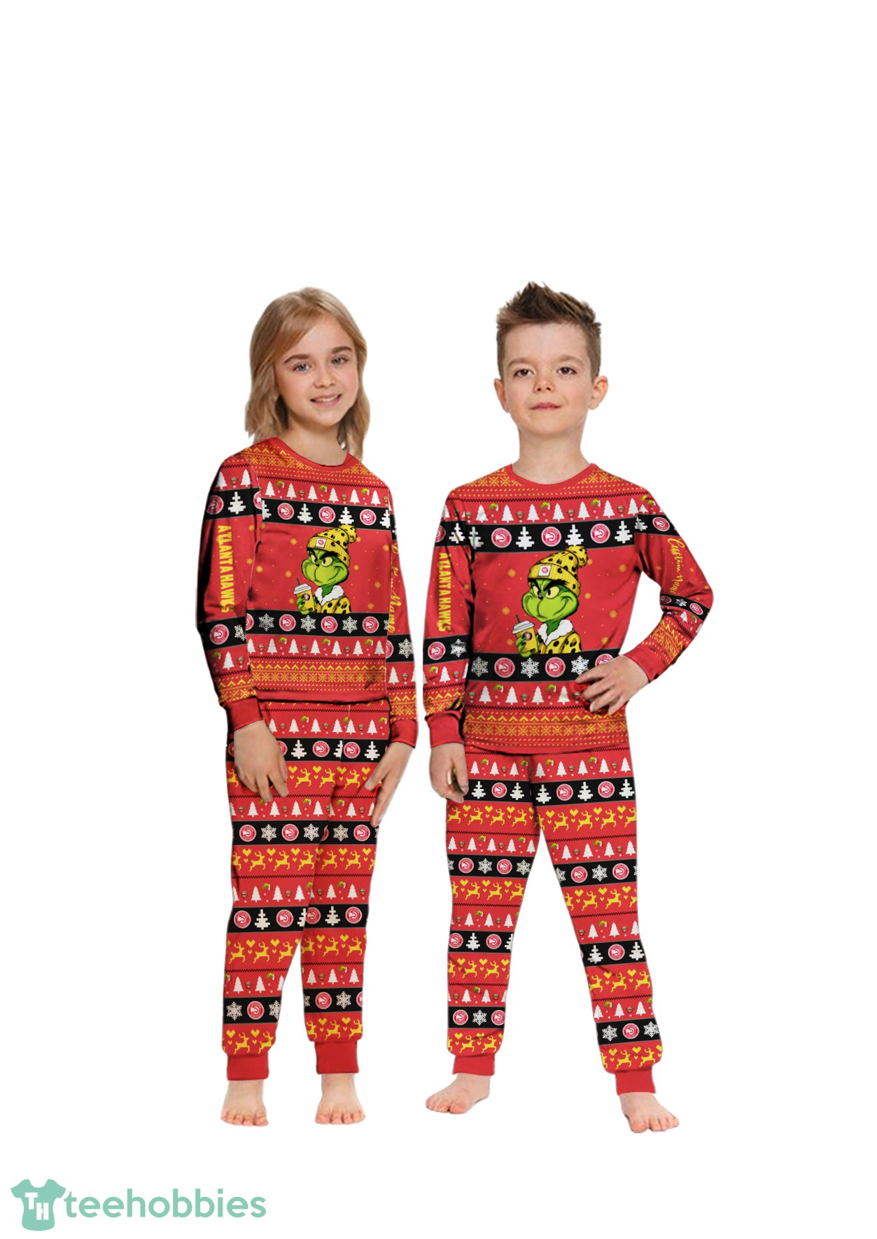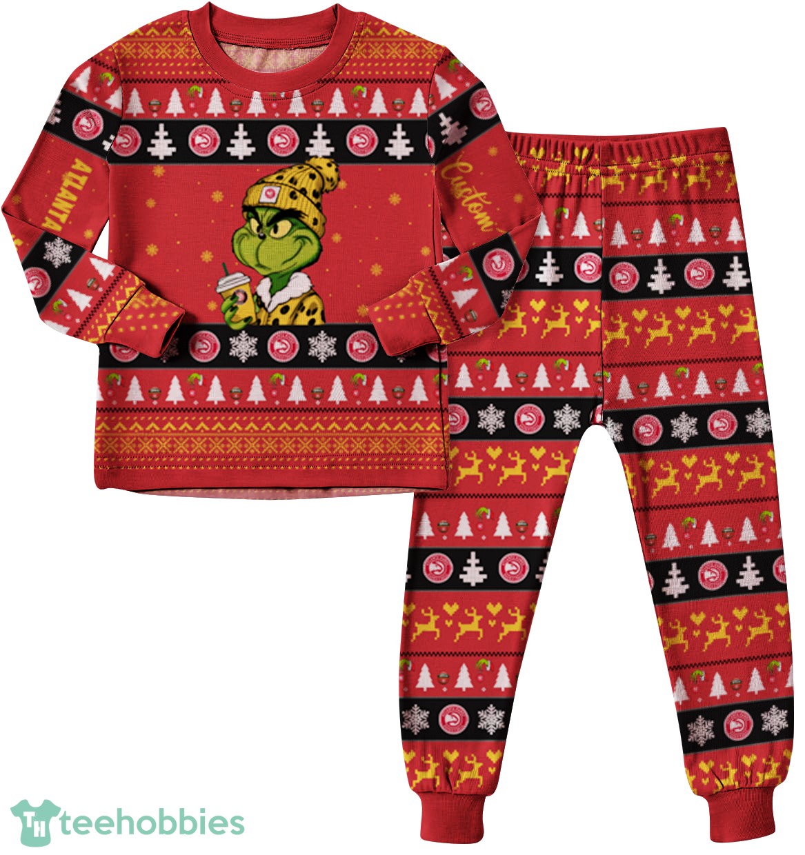 NBA Grinch Atlanta Hawks Custom Name Christmas Knitting Pattern Matching Family Pajamas Set