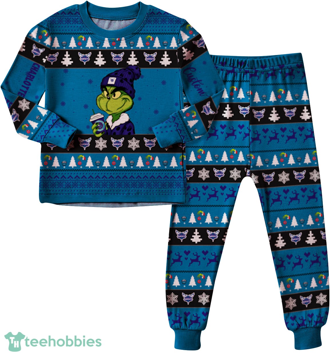 NBA Grinch Charlotte Hornets Custom Name Christmas Knitting Pattern Matching Family Pajamas Set