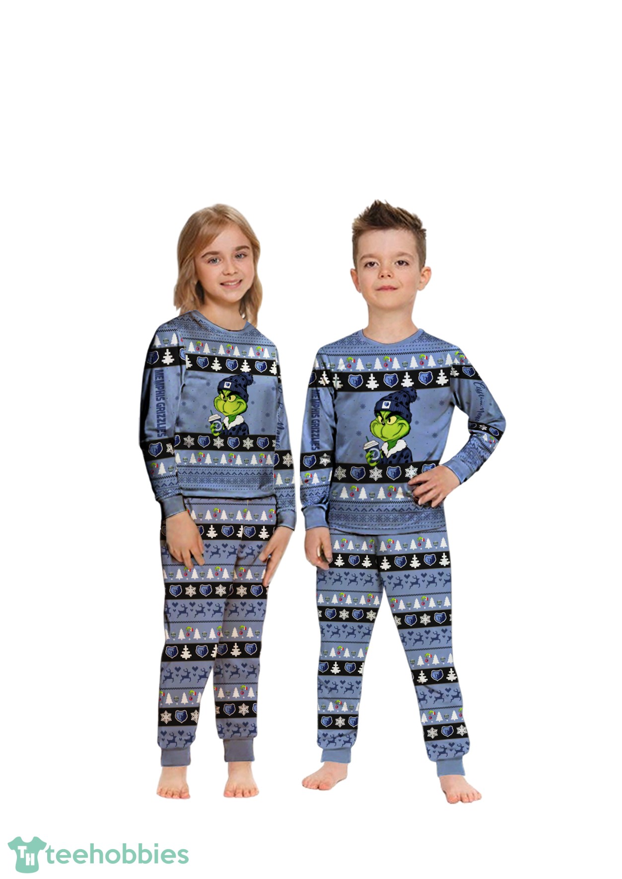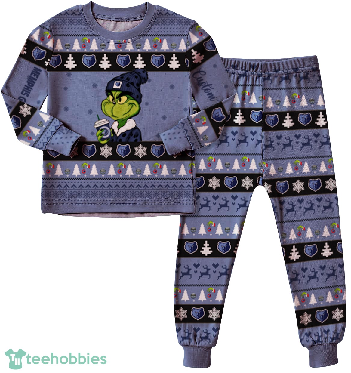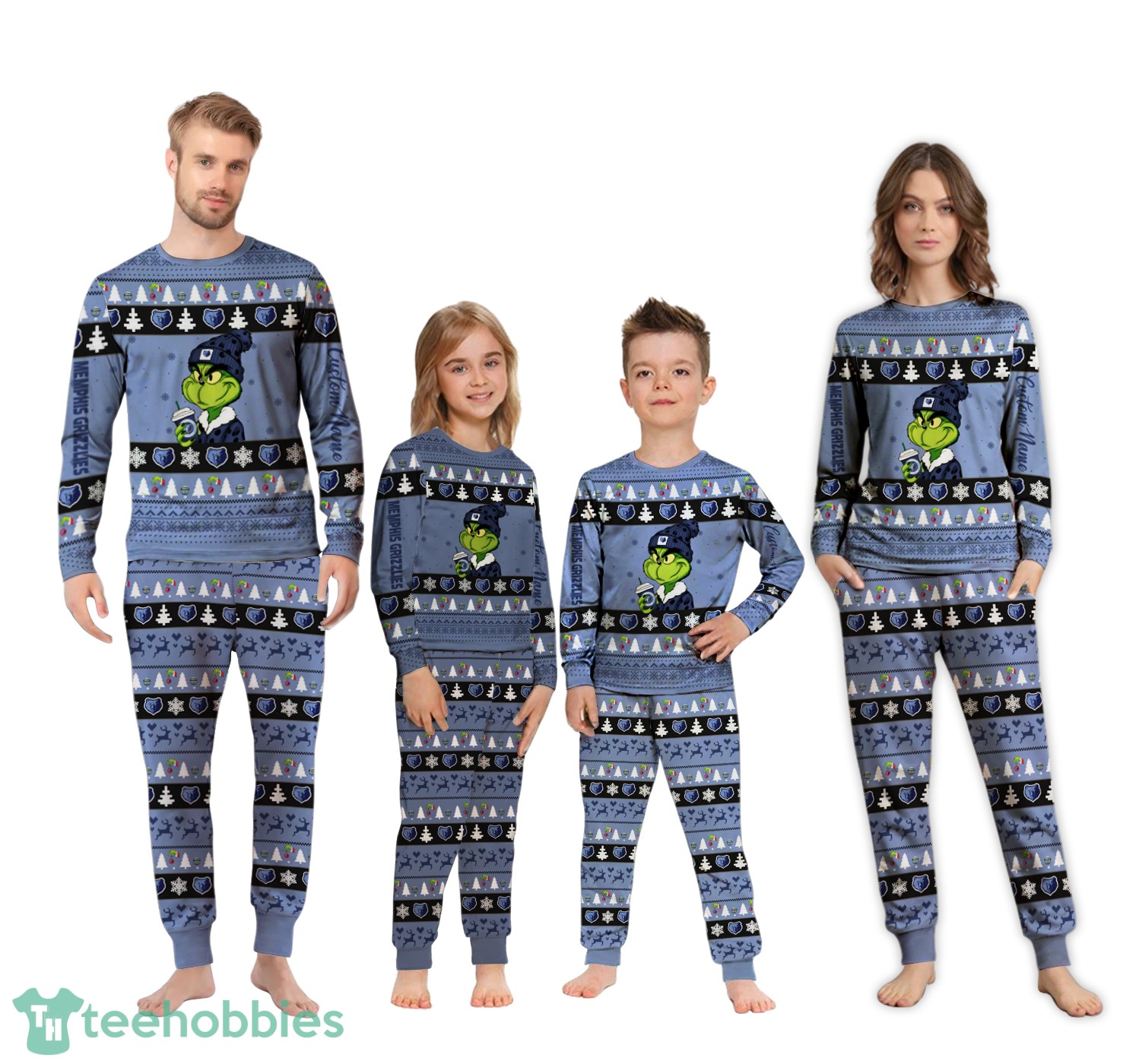 NBA Grinch Memphis Grizzlies Custom Name Christmas Knitting Pattern Matching Family Pajamas Set