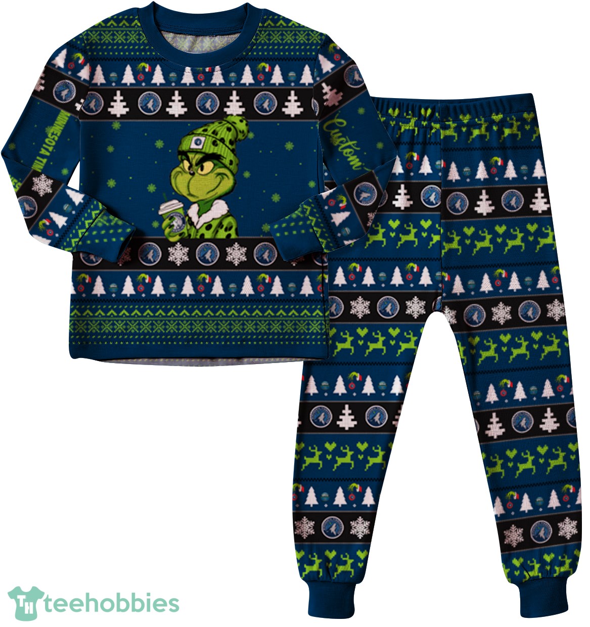 Be the first to review “NBA Grinch Minnesota Timberwolves Custom Name Christmas Knitting Pattern Matching Family Pajamas Set”