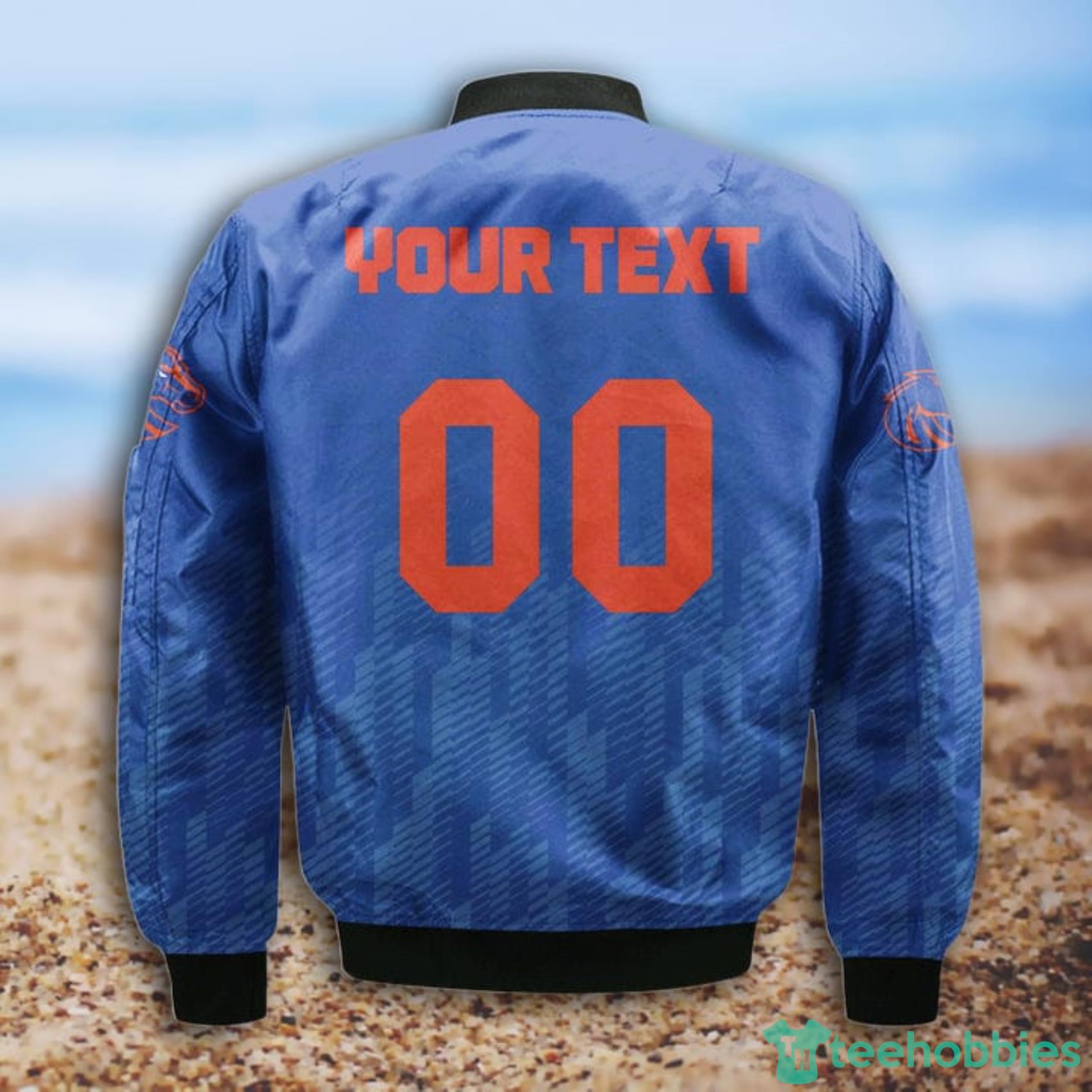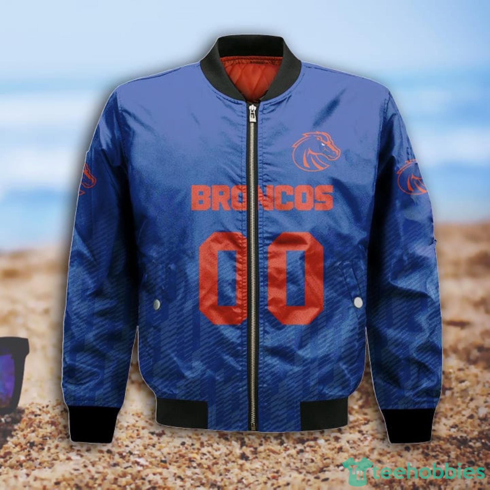 Some of the NCAA Boise State Broncos Custom Name And Number Blue Ombre Bomber Jacket Gift For Fans photos