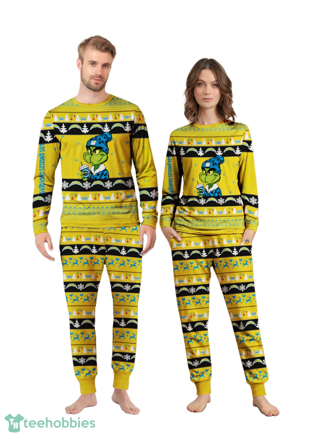 Be the first to review “NFL Grinch Los Angeles Chargers Custom Name Christmas Knitting Pattern Matching Family Pajamas Set”