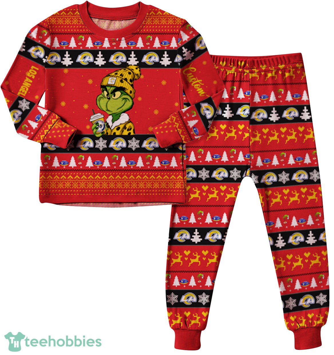 NFL Grinch Los Angeles Rams Custom Name Christmas Knitting Pattern Matching Family Pajamas Set