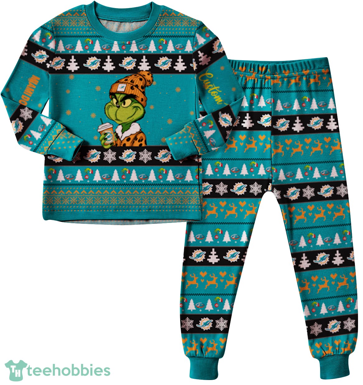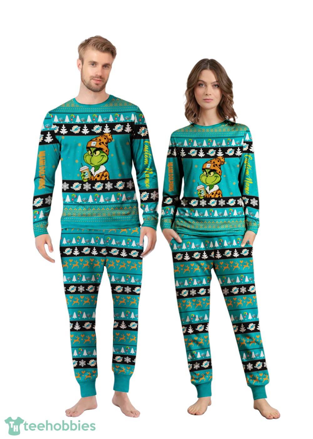 NFL Grinch Miami Dolphins Custom Name Christmas Knitting Pattern Matching Family Pajamas Set
