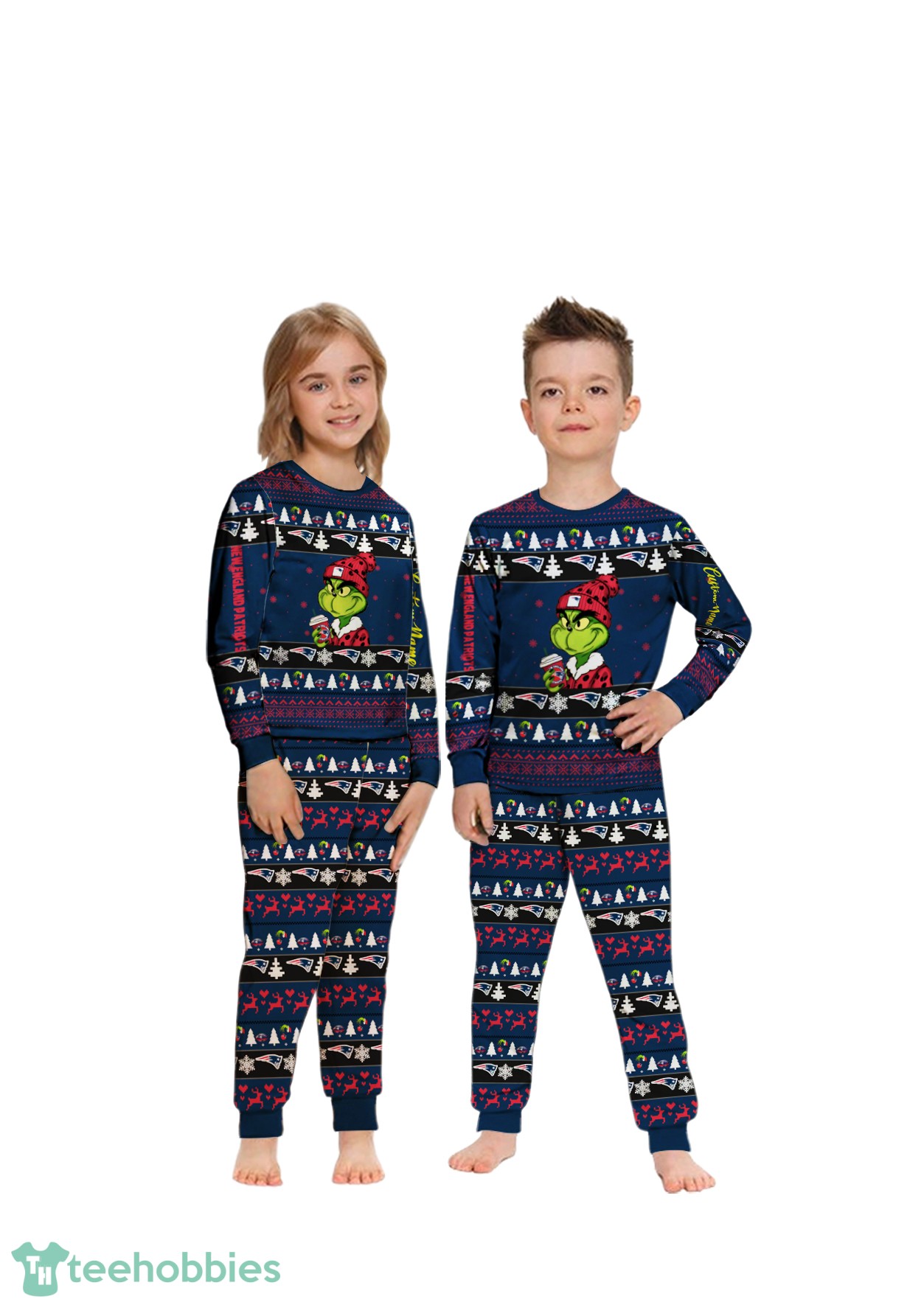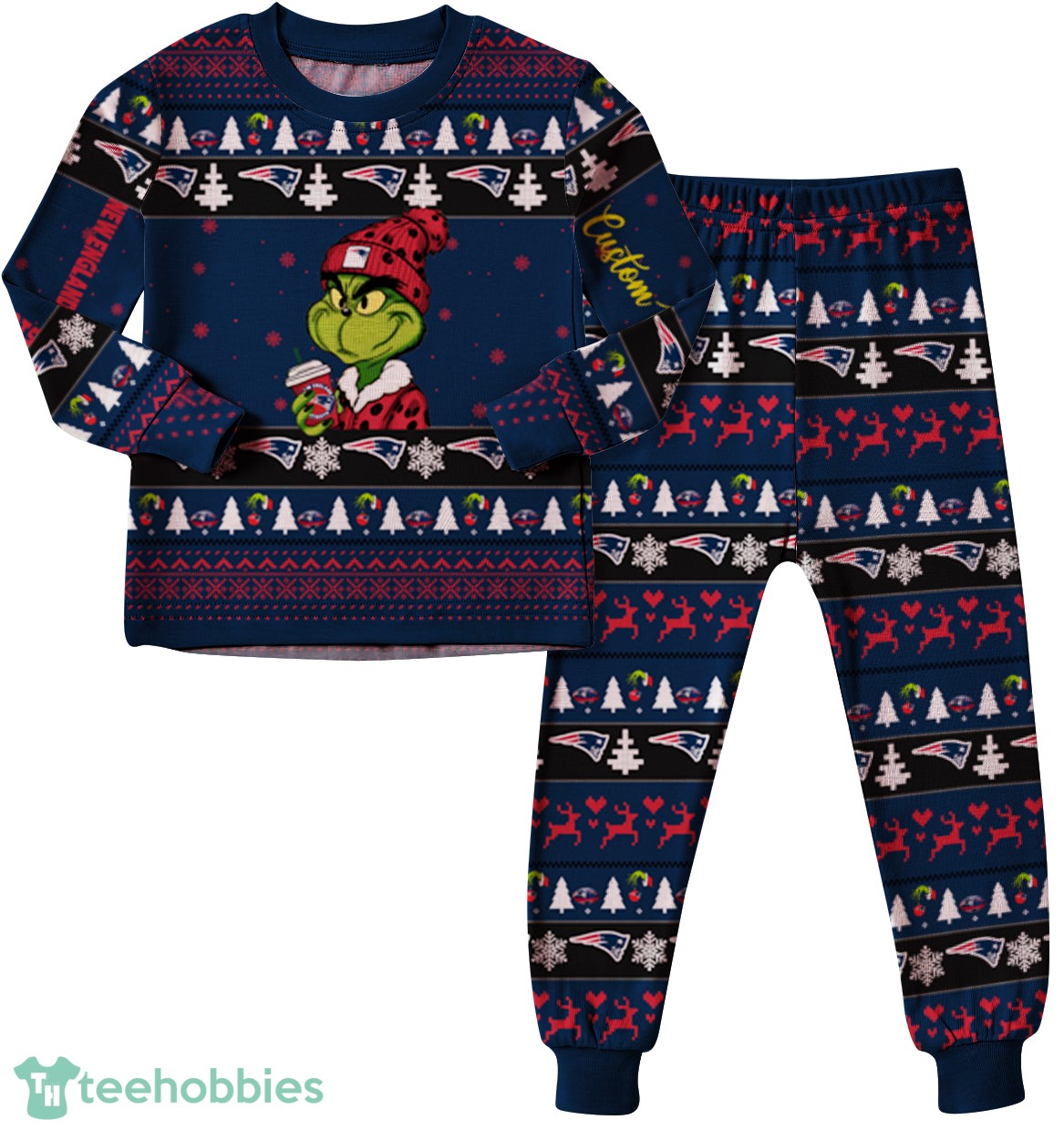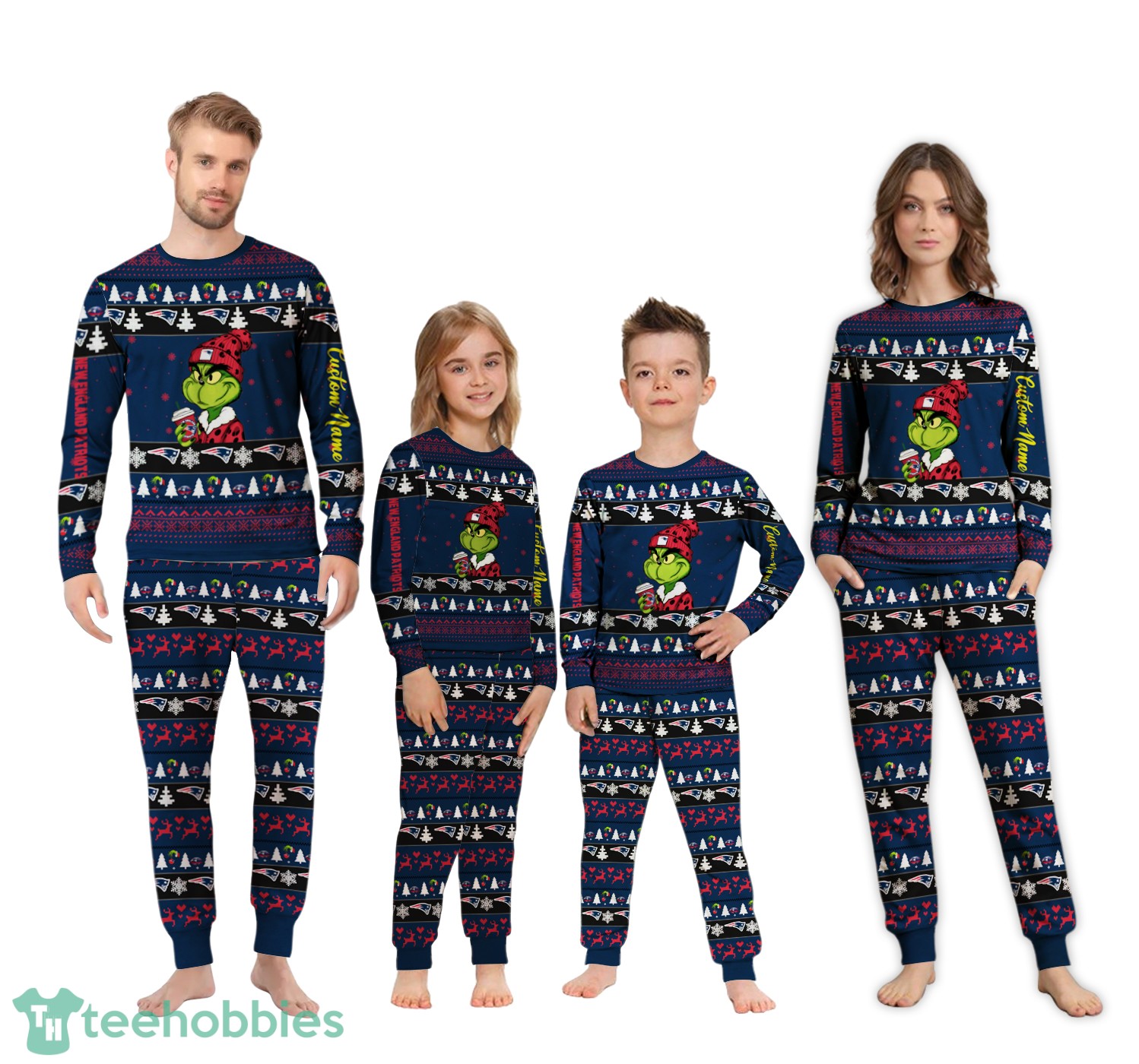 NFL Grinch New England Patriots Custom Name Christmas Knitting Pattern Matching Family Pajamas Set