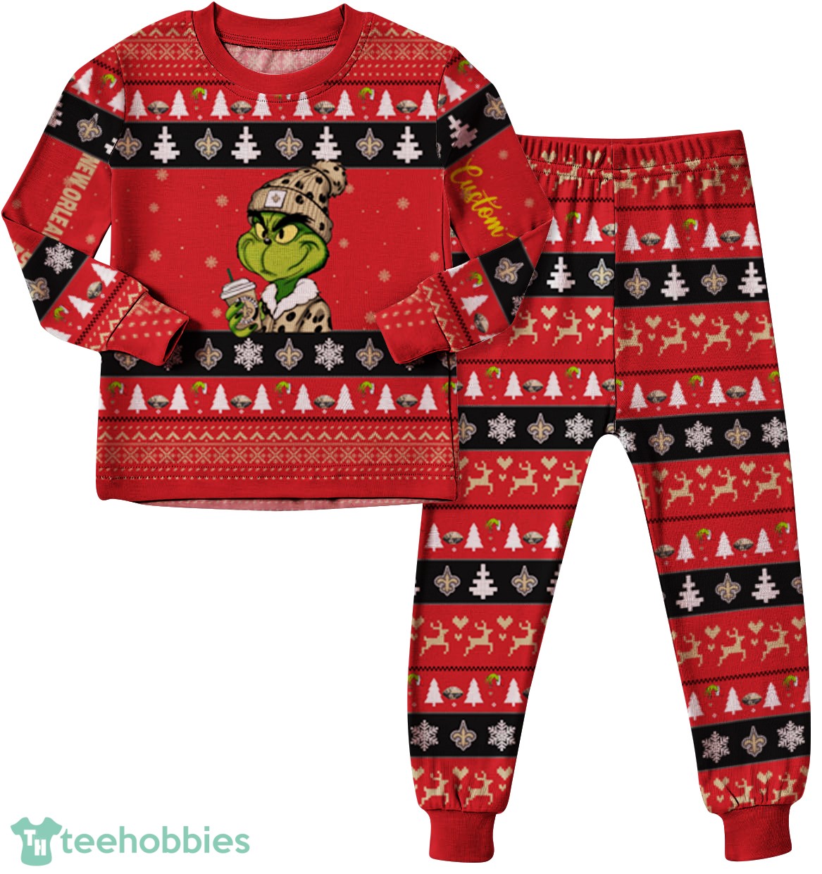 NFL Grinch New Orleans Saints Custom Name Christmas Knitting Pattern Matching Family Pajamas Set