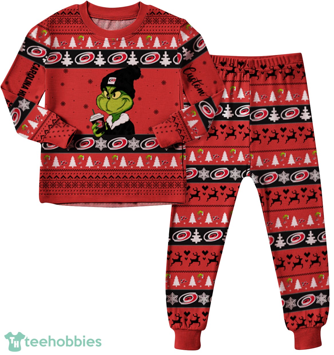 NHL Grinch Carolina Hurricanes Custom Name Christmas Knitting Pattern Matching Family Pajamas Set