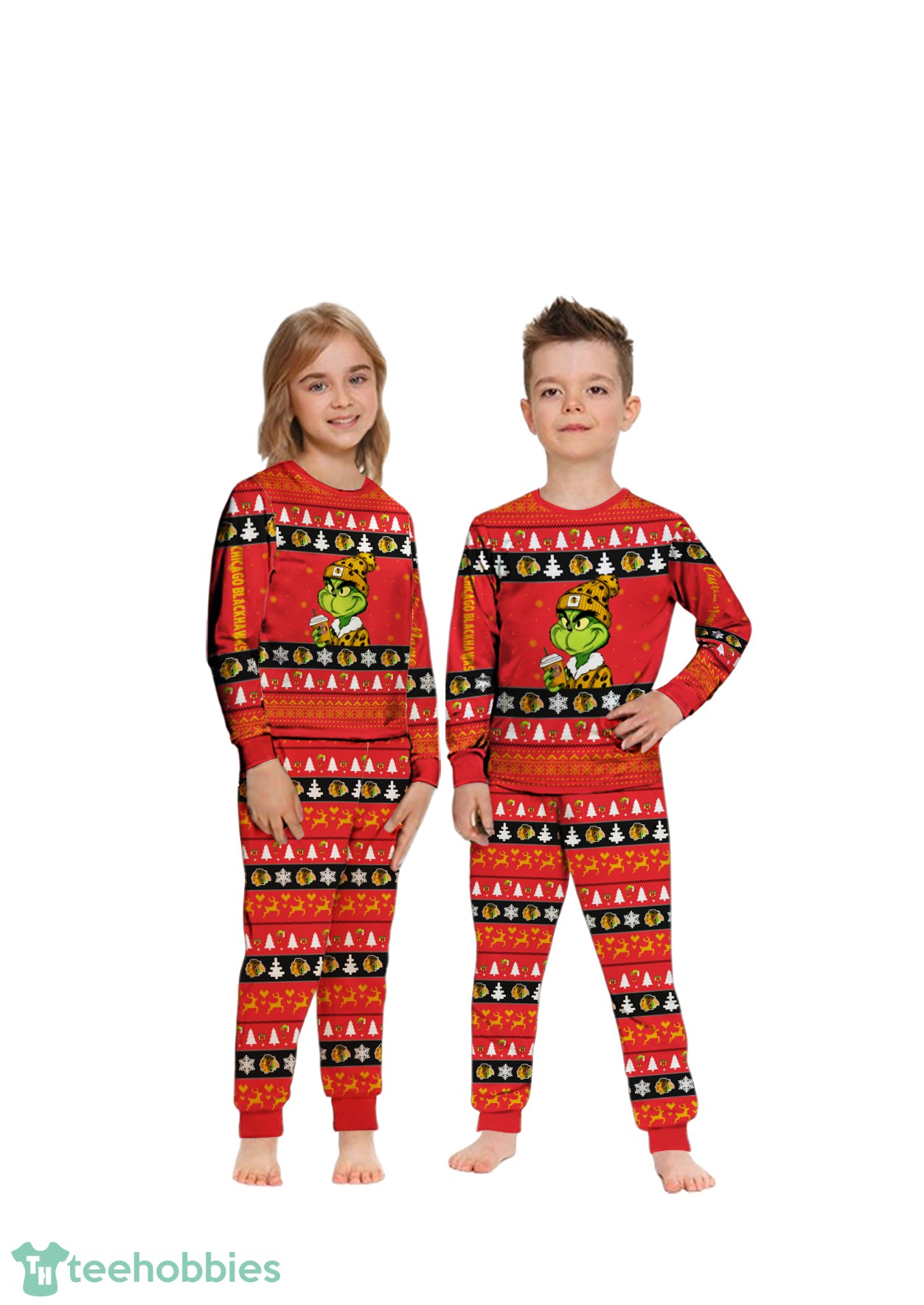 NHL Grinch Chicago Blackhawks Custom Name Christmas Knitting Pattern Matching Family Pajamas Set