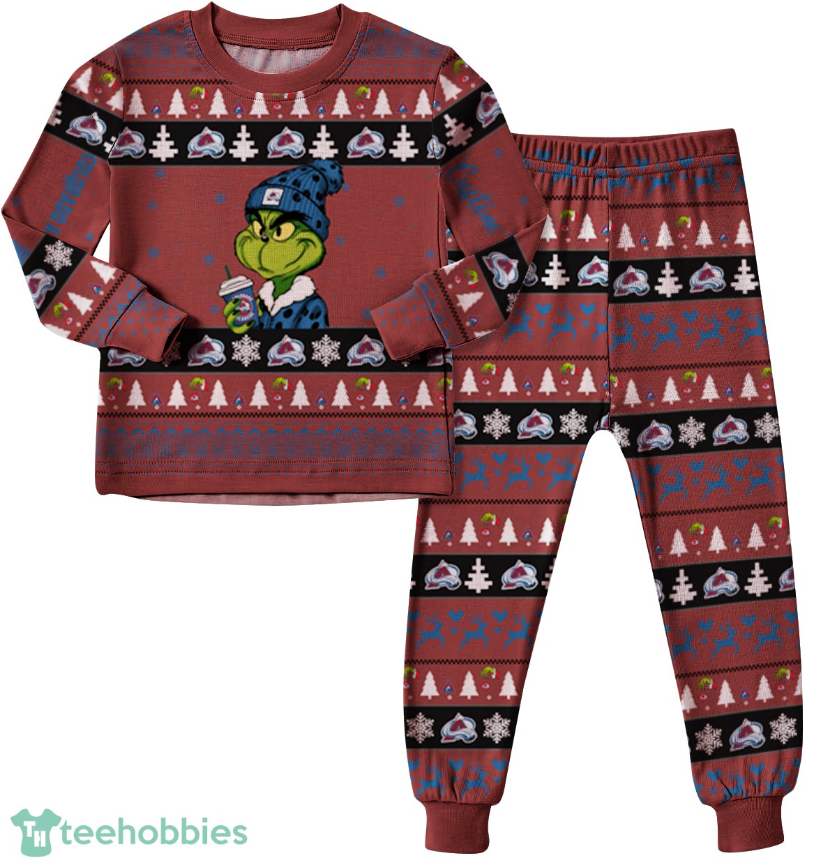 NHL Grinch Colorado Avalanche Custom Name Christmas Knitting Pattern Matching Family Pajamas Set