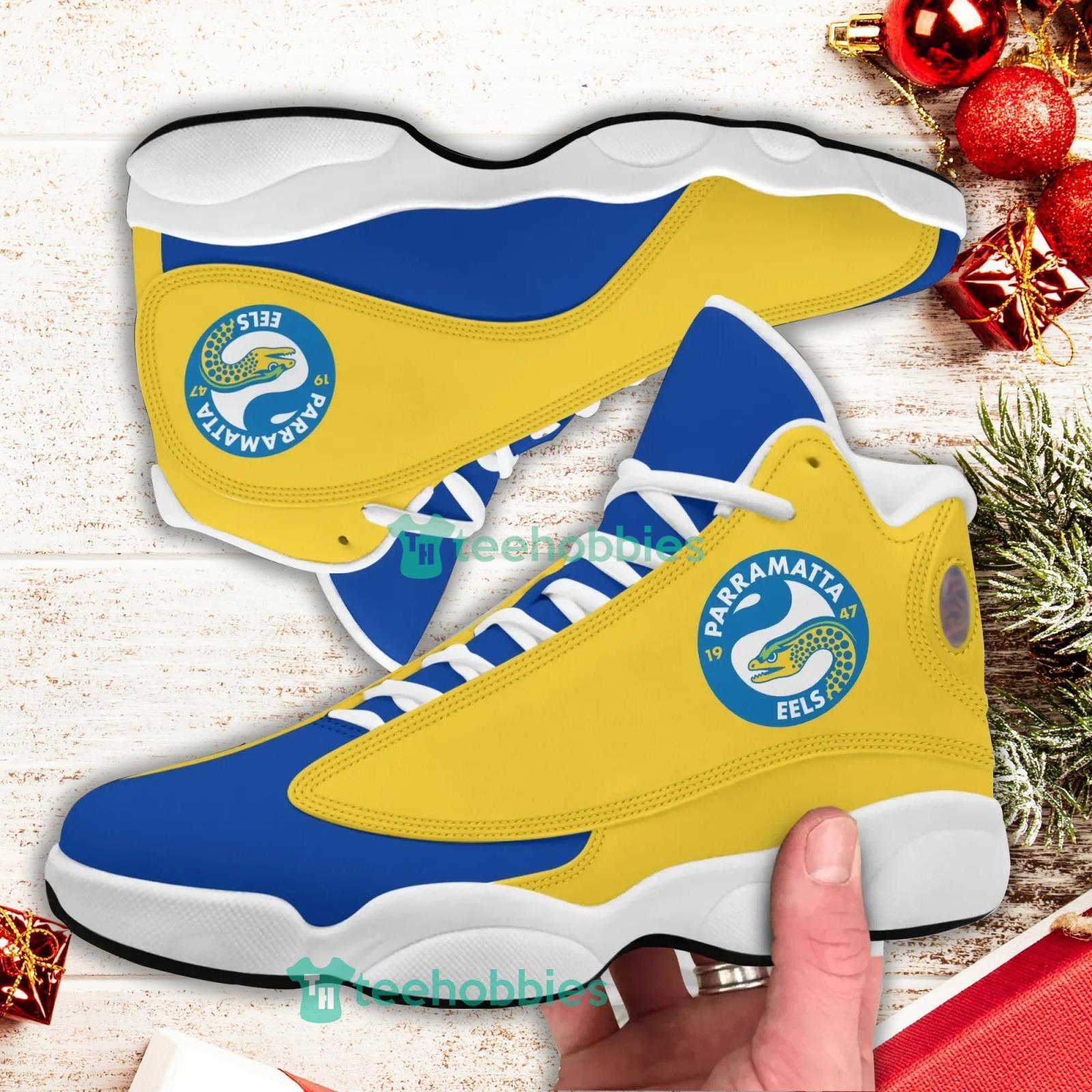 Some of the NRL Parramatta Eels Blue Gold Air Jordan 13 Sneaker Shoes For Fans photos