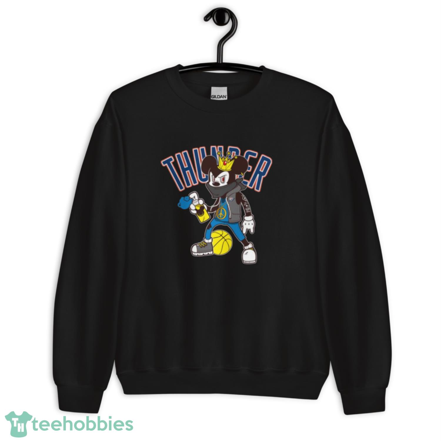 The NBA Basketball Mickey Peace Sign Sports T Shirt is available in a variety of sizes, so you can find the perfect fit for you. Whether you’re a die-hard fan or just looking for a unique addition to your wardrobe, this shirt is sure to impress. Don’t miss out on your chance to show off your team spirit in style – order your Oklahoma City Thunder NBA Basketball Mickey Peace Sign Sports T Shirt today!