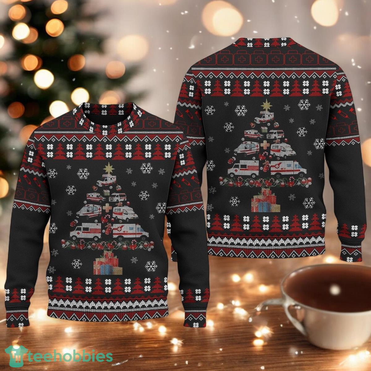 Paramedic Ambulance Ugly Christmas Sweater Ambulance Christmas Tree Xmas Holiday Sweater