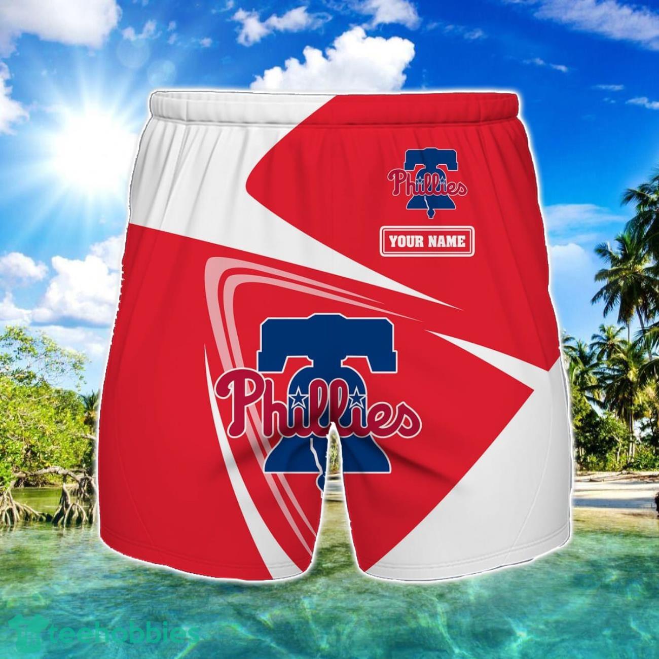 Philadelphia Phillies Logo Printed 3D Beach Shorts For Men Custom Name Summer Gift Ideas