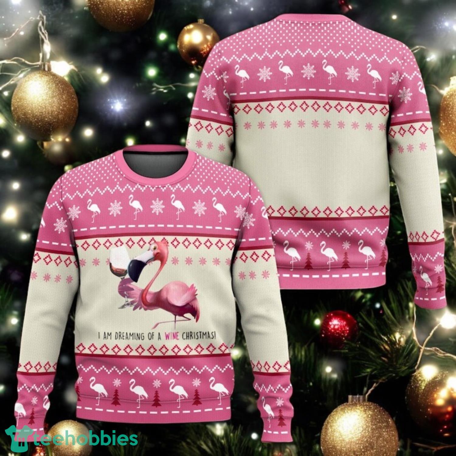 Pink Flamingo Christmas Ulgy Sweater Funny Wine Holiday Sweater