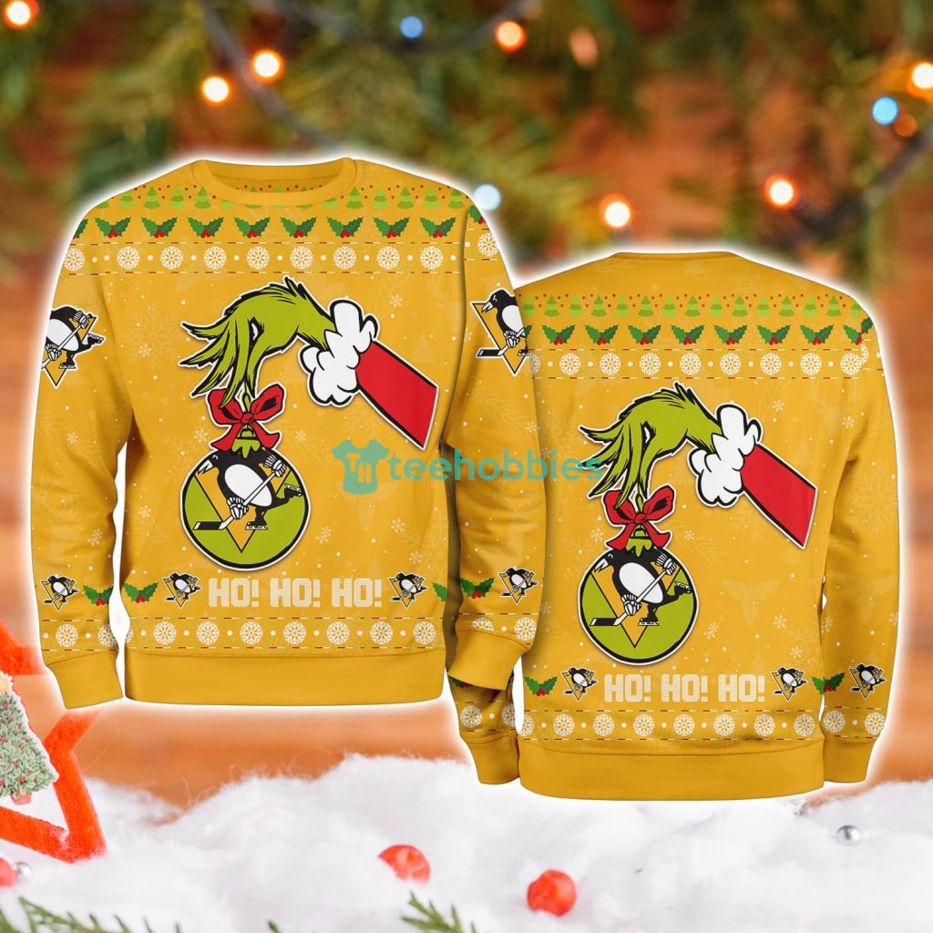 Show Your Team Spirit with the Pittsburgh Penguins Grinch Hand Ugly Christmas Sweater 3D