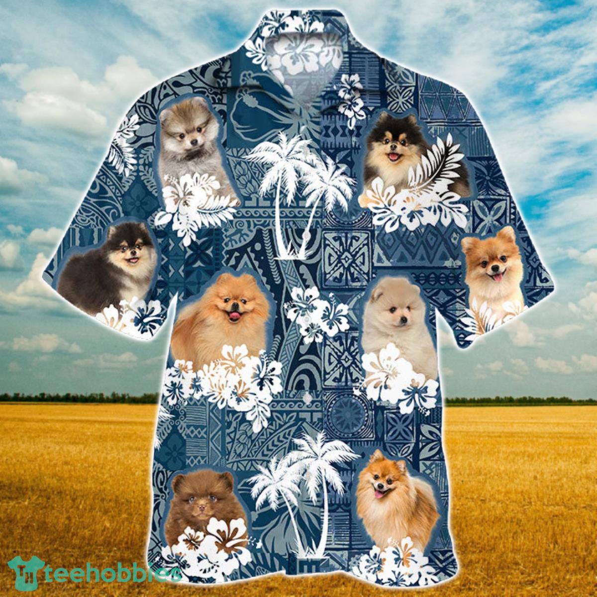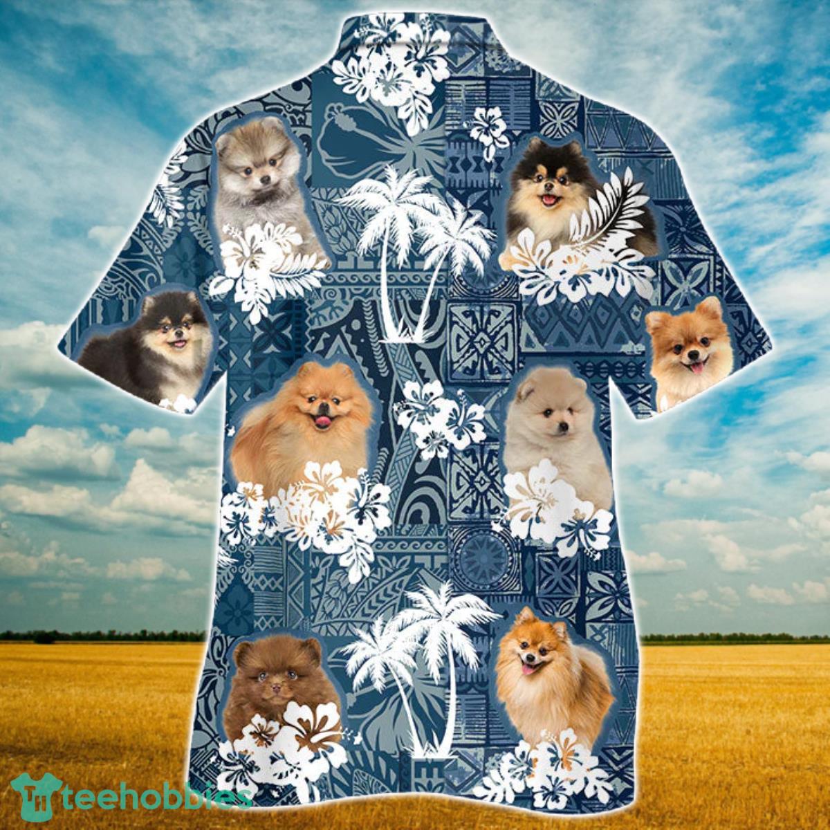 Some of the Pomeranian Hawaiian Tropical Plants Pattern Blue And White All Over Printed 3D Hawaiian Shirt For Men Women photos