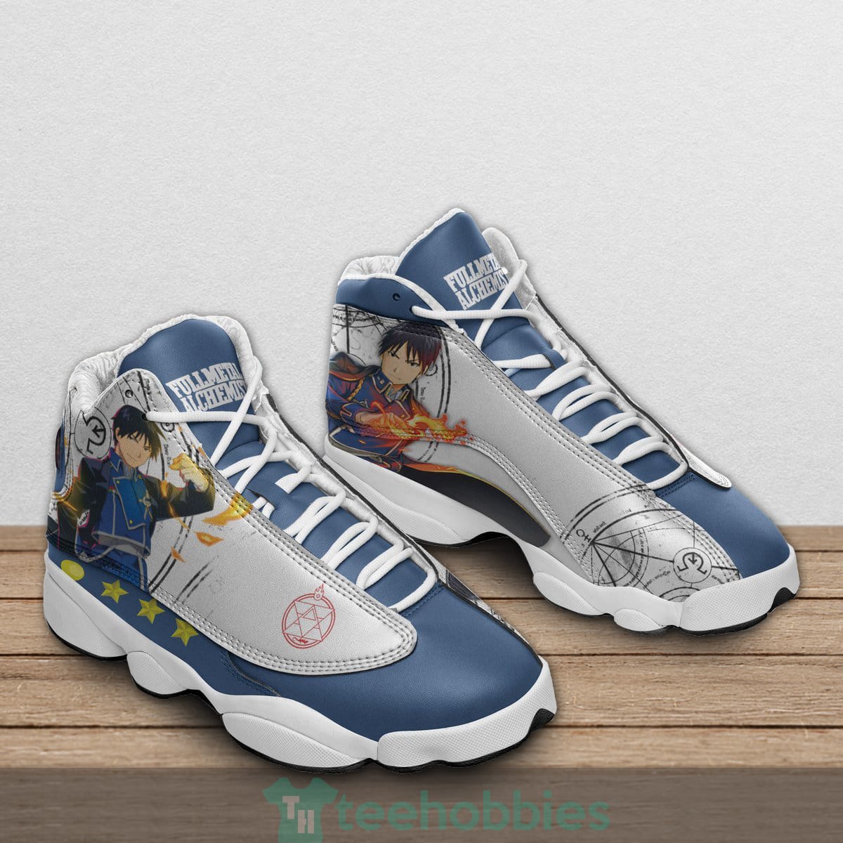 Roy Mustang Custom Anime Fullmetal Alchemist Air Jordan 13 Shoes. The Air Jordan 13 sneakers features are sure to make any sneaker fan feel stylish.The design and the color scheme are sure to make you look good in front of anyone. While these shoes are light in weight, they are durable and durable.There is nothing more perfect than the Air Jordan 13 with Japanese cartoon characters are printed on it.