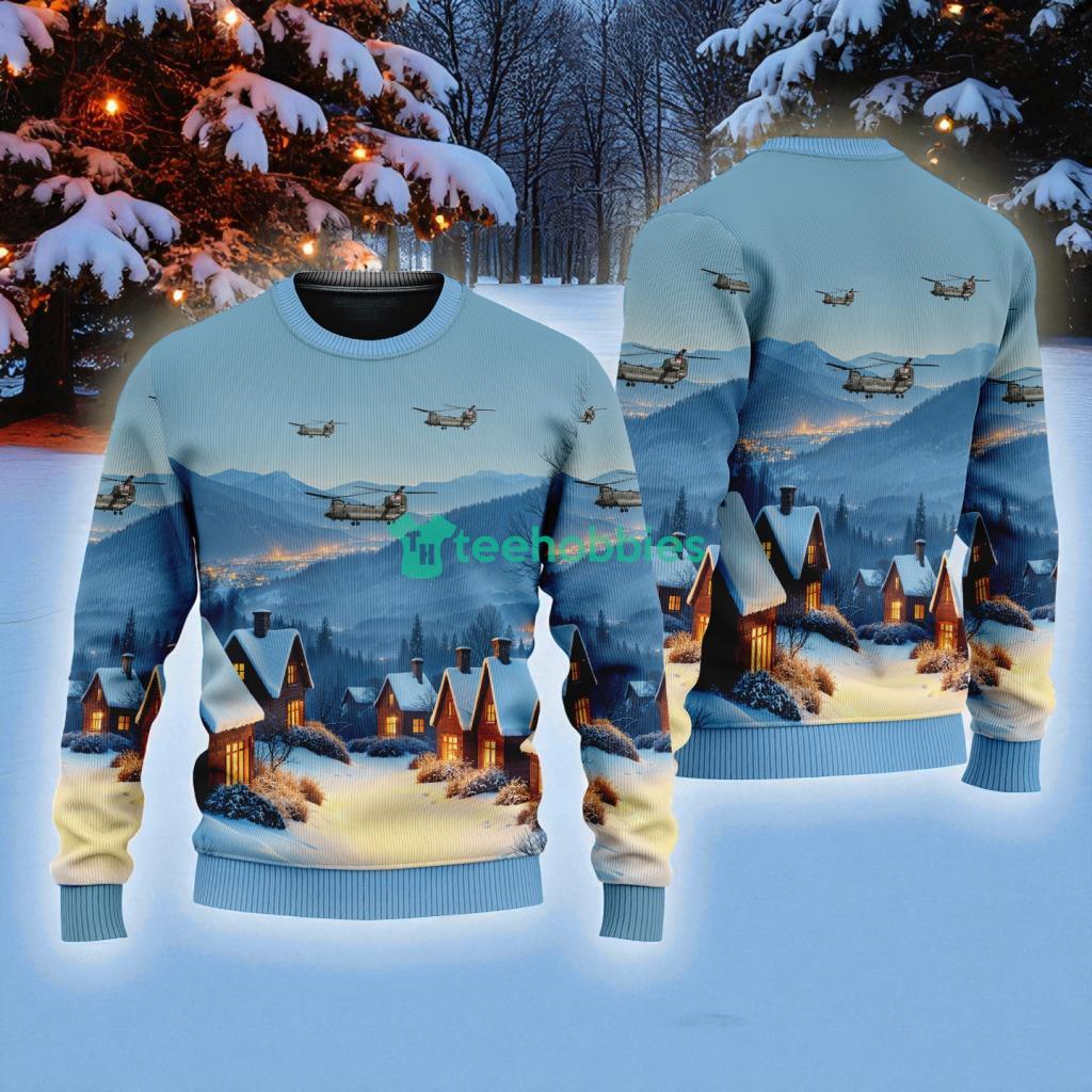 Royal Air Force Chinook Hc American Airlines In The Snowy Christmas Sky Ugly Sweater Best Gift