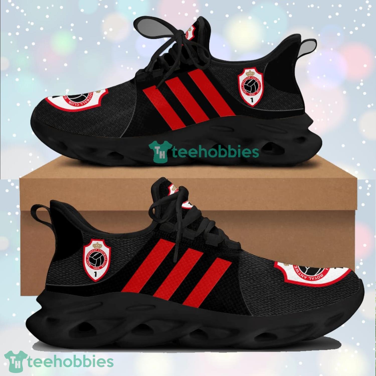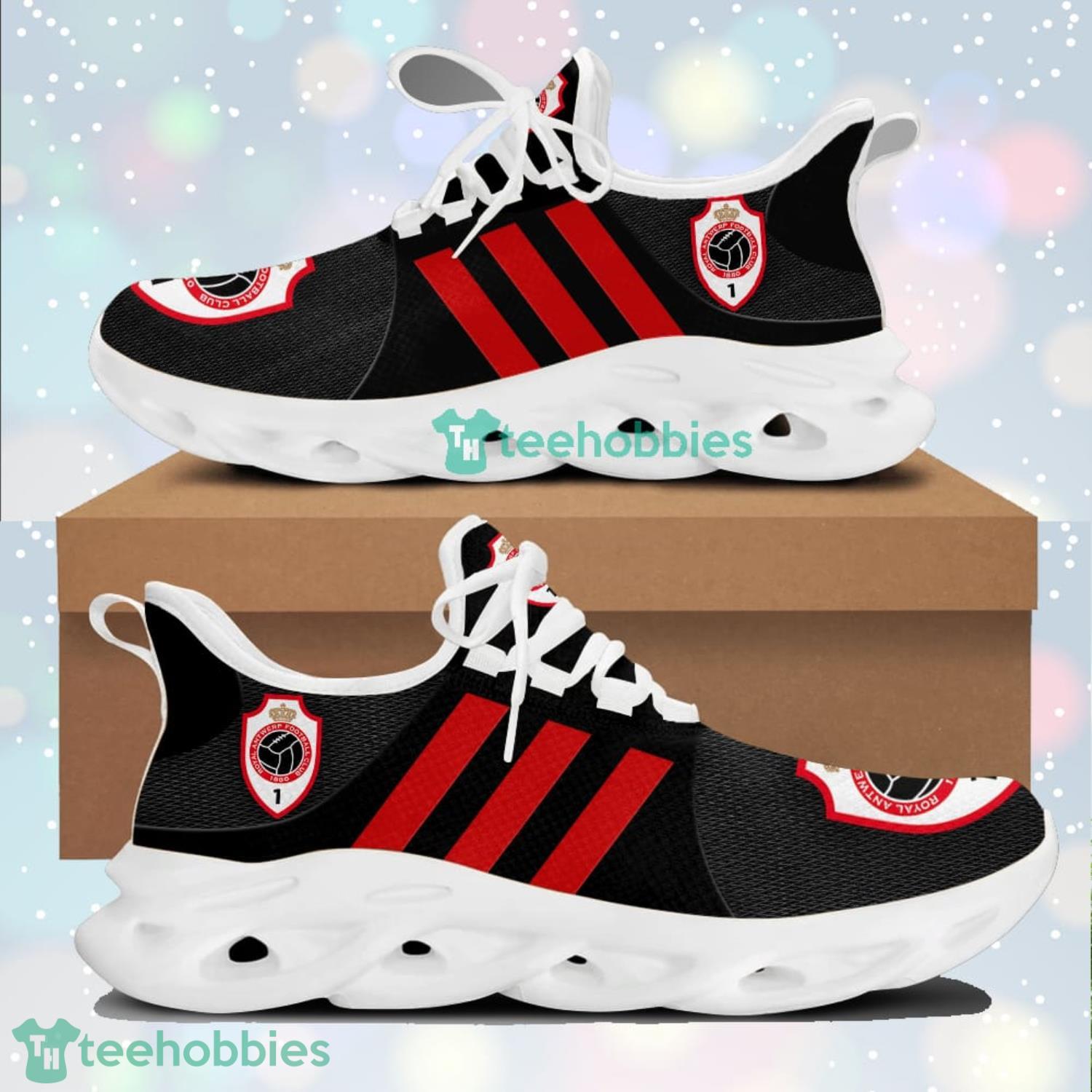 This Royal Antwerp F.C Red Striped Black Max Soul Shoes Running Sneakers is a breathable, lightweight, and comfortable casual outdoor shoe that has a unique design. It is made of a mesh fabric which makes it sweat absorbent and breathable, while the rubber bottom ensures traction, comfort, and durability. It is available in two colors: black or white sole. There are two styles of shoelace holes so you can choose your preference.